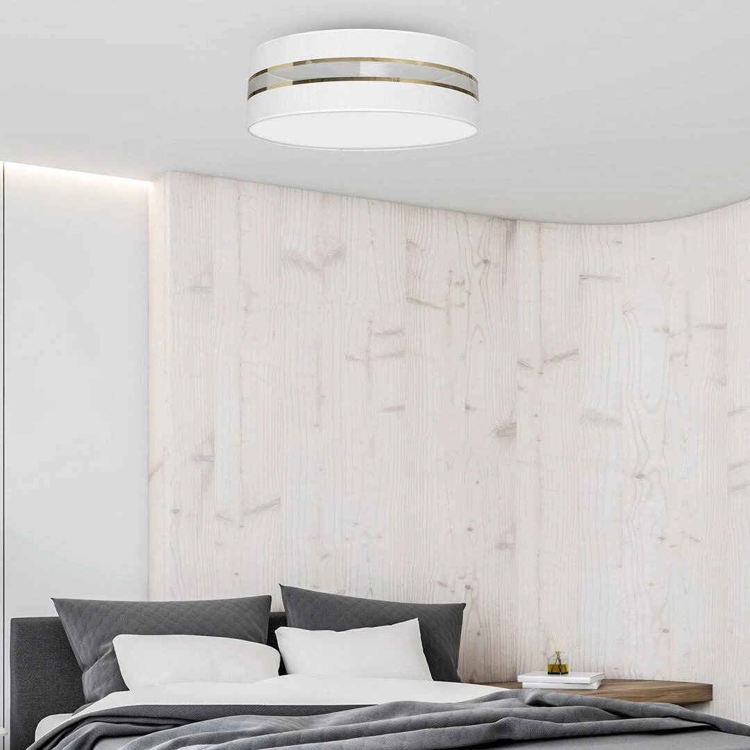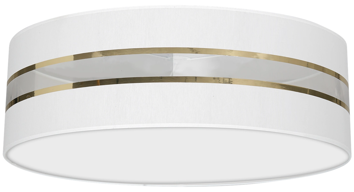 ULTIMO WHITE MLP7352 to stylowa lampa sufitowa z trzema źródłami światła. Korpus lampy wykonano z wysokiej jakości metalu. Lampa posiada cylindryczny klosz z białej tkaniny z ozdobnymi złotymi akcentami i transparentnym pasem na środku. Oprawa będzie idealnym wyborem do wnętrz urządzonych w stylu klasycznym, nowoczesnym oraz glamour. Doskonale będzie się prezentować w: salonie, jadalni, sypialni, pokoju młodzieżowym, gabinecie, lokalu, biurze, przedpokoju, kuchni. Wysokość lampy to: 13 cm, średnica 60 cm. Źródłem światła jest żarówka typu E27 o mocy max 60W w ilości 3 szt.