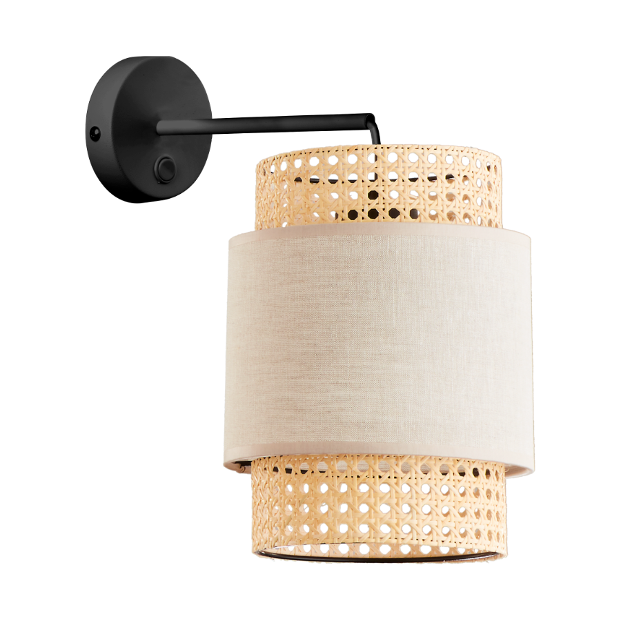 Lampa ścienna rattanowa abażur BOHO BLACK wys. 35cm | beż 6302