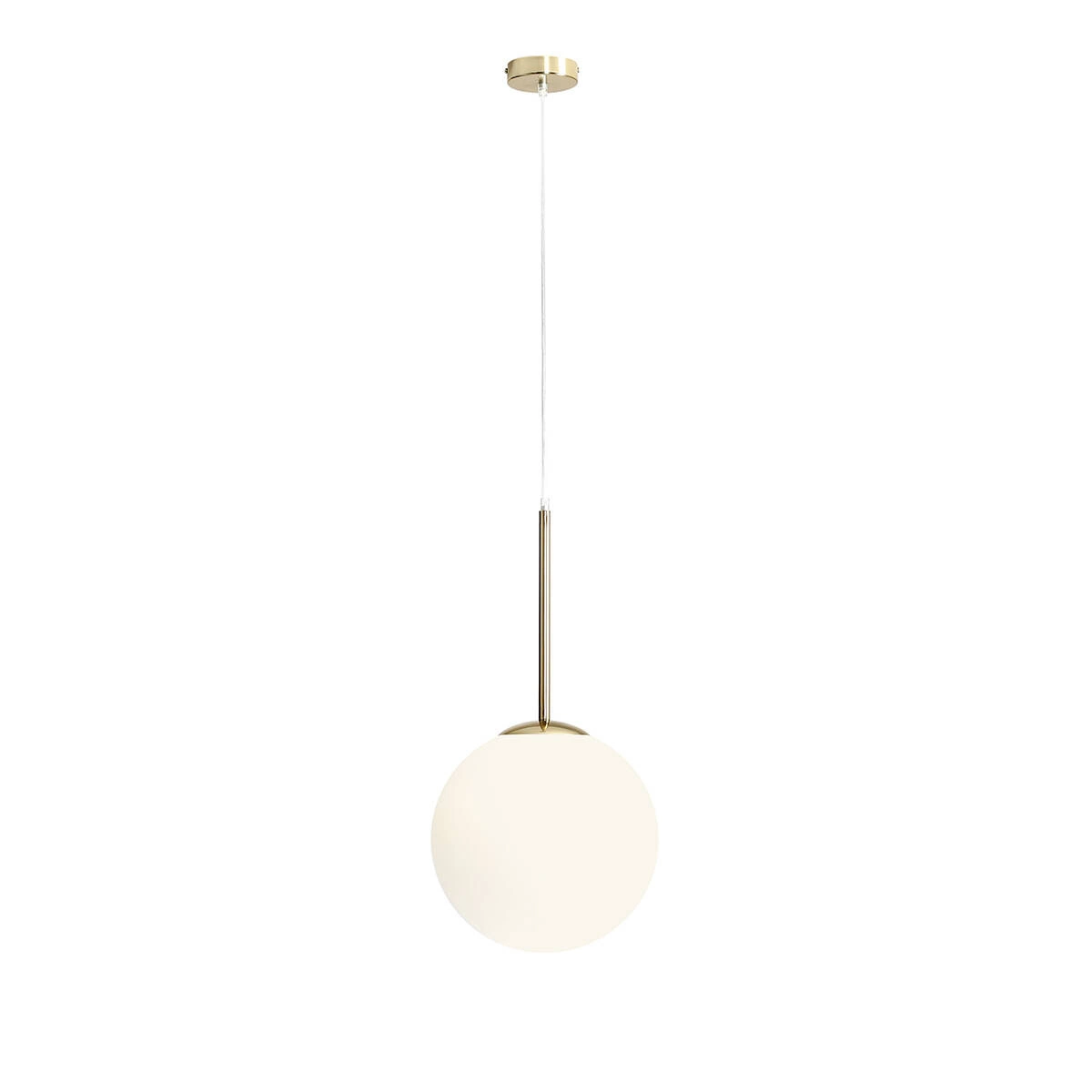 BOSSO 1087G30 to nowoczesna lampa wisząca z jednym źródłem światła. Zawiesie lampy wykonano z wysokiej jakości metalu w kolorze złotym. Klosz jest wykonany z białego szkła. Oprawa będzie idealnym wyborem do wnętrz urządzonych w nowoczesnym stylu. Doskonale będzie się prezentować w: salonie, jadalni, sypialni, pokoju młodzieżowym, lokalu, przedpokoju, kuchni. Dużym atutem jest możliwość regulacji wysokości. Wysokość maksymalna lampy to: 120 cm, szerokość 30 cm, głębokość 30 cm. Źródłem światła jest żarówka typu E27 o mocy max 60W w ilości 1 szt.