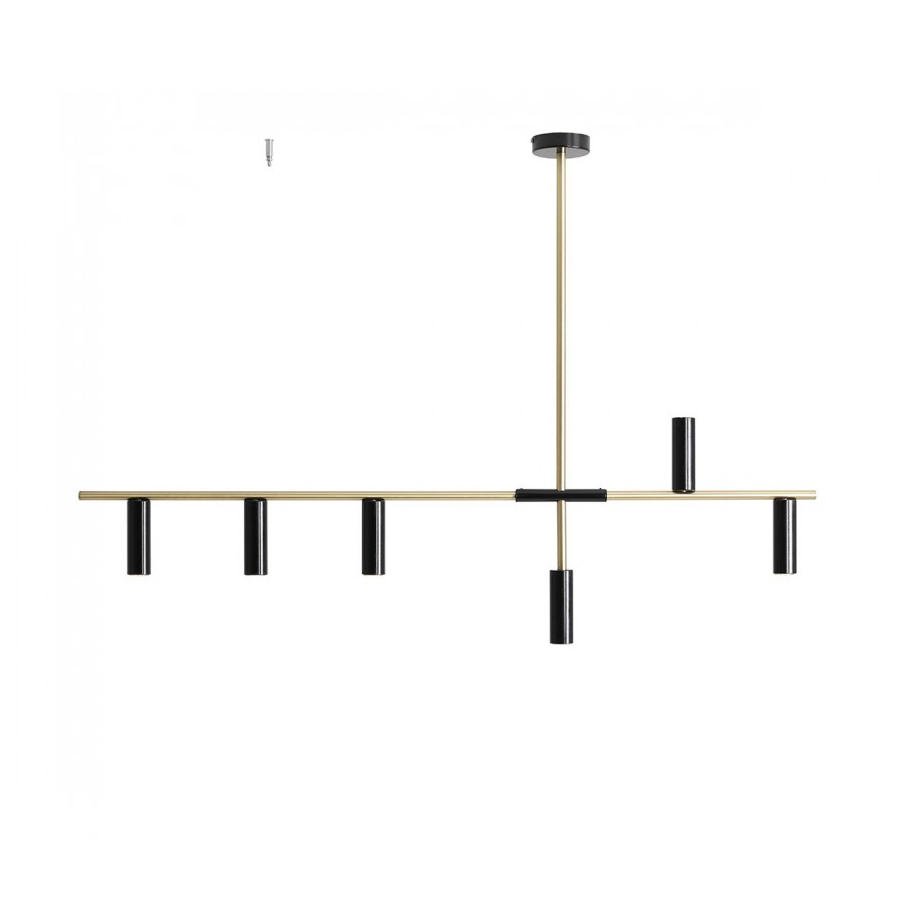 TREVO 1083K40 to lampa sufitowa z sześcioma źródłami światła. Wykonana została z wysokiej jakości szczotkowanego mosiądzu, klosze i podsufitka są w kolorze czarnym. Oprawa będzie idealnym wyborem do wnętrz urządzonych w stylu nowoczesnym oraz minimalistycznym. Doskonale będzie się prezentować w: salonie, jadalni, sypialni, pokoju młodzieżowym, lokalu, gabinecie, biurze, przedpokoju. Wysokość lampy to: 86 cm, szerokość 126 cm, głębokość 10 cm.