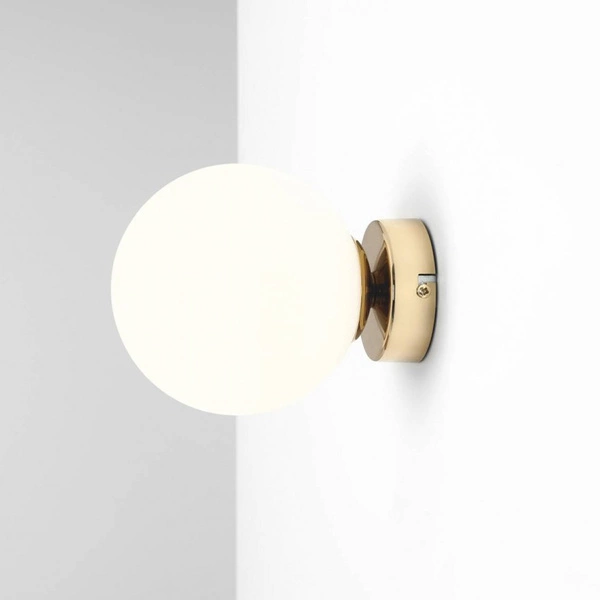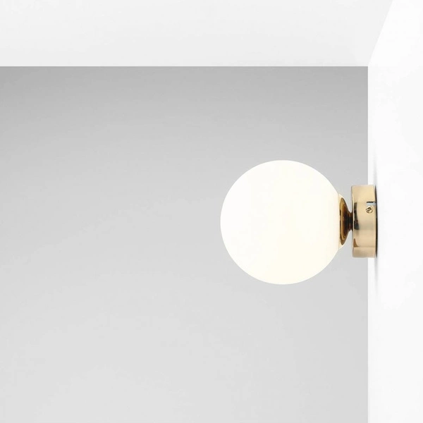 BALL 1076C30_S to lampa ścienna z jednym źródłem światła. Podstawę lampy wykonano z wysokiej jakości metalu w kolorze złotym. Klosz jest z białego szkła. Kinkiet będzie idealnym wyborem do wnętrz urządzonych w stylu nowoczesnym oraz minimalistycznym. Doskonale będzie się prezentować w: salonie, sypialni, jadalni, pokoju młodzieżowym, gabinecie, lokalu, przedpokoju, korytarzu. Wysokość kinkietu to: 14 cm, szerokość 14 cm, głębokość 17 cm. Źródłem światła jest żarówka typu E14 o mocy max 40W w ilości 1 szt.