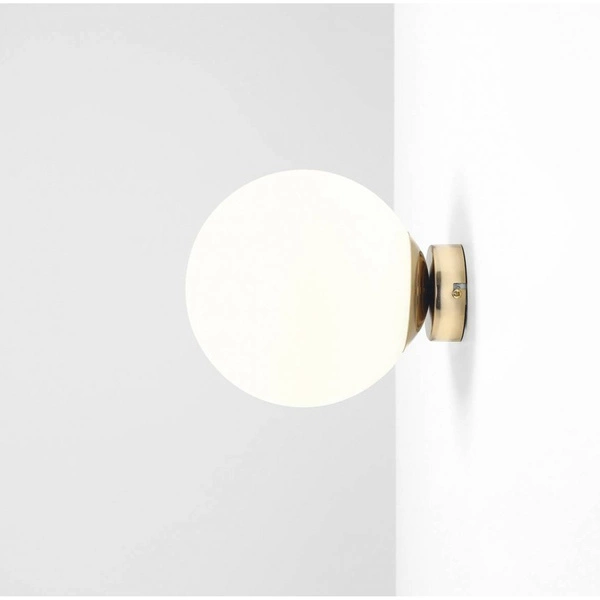 BALL 1076C30_M to lampa ścienna z jednym źródłem światła. Podstawę lampy wykonano z wysokiej jakości metalu w kolorze złotym. Klosz jest z białego szkła. Kinkiet będzie idealnym wyborem do wnętrz urządzonych w stylu nowoczesnym oraz minimalistycznym. Doskonale będzie się prezentować w: salonie, sypialni, jadalni, pokoju młodzieżowym, gabinecie, lokalu, przedpokoju, korytarzu. Wysokość kinkietu to: 20 cm, szerokość 20 cm, głębokość 23 cm. Źródłem światła jest żarówka typu E27 o mocy max 60W w ilości 1 szt.