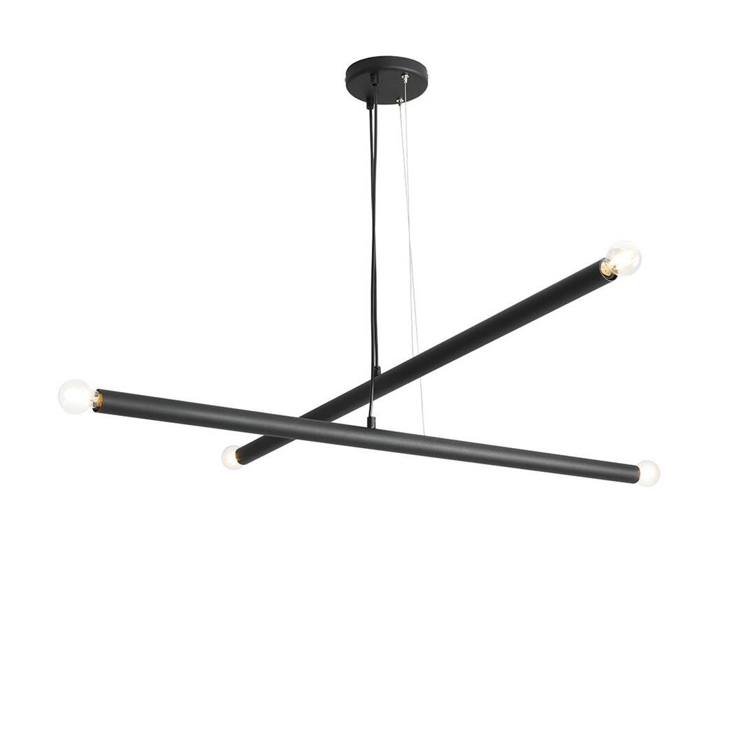 TUBO 4 to nowoczesna lampa wisząca z czterema źródłami światła, która składa się z dwóch luźno zawieszonych metalowych tub w kolorze czarnym zakończonych oprawkami żarówek. Lampa nie posiada kloszy co sprawia, że odsłonięte żarówki mogą być elementami ozdobnymi dlatego warto wybrać ich dekoracyjny model. Oprawa będzie idealnym wyborem do wnętrz urządzonych w stylu nowoczesnym, minimalistycznym oraz loftowym. Doskonale będzie się prezentować w: salonie, jadalni, sypialni, pokoju młodzieżowym, gabinecie, lokalu, kuchni. Dużą zaletą jest możliwość regulacji wysokości oraz pochylenia tub. Wysokość maksymalna lampy to: 105 cm, szerokość 100 cm, głębokość 100 cm. Źródłem światła jest żarówka typu E14 o mocy max 40W w ilości 4 szt.
