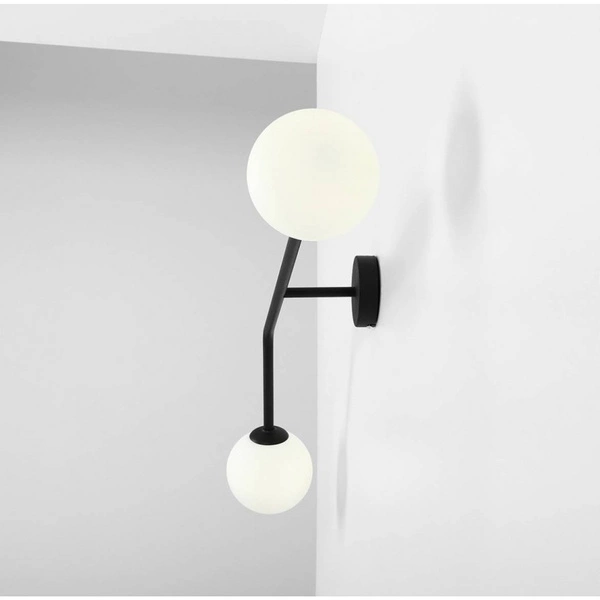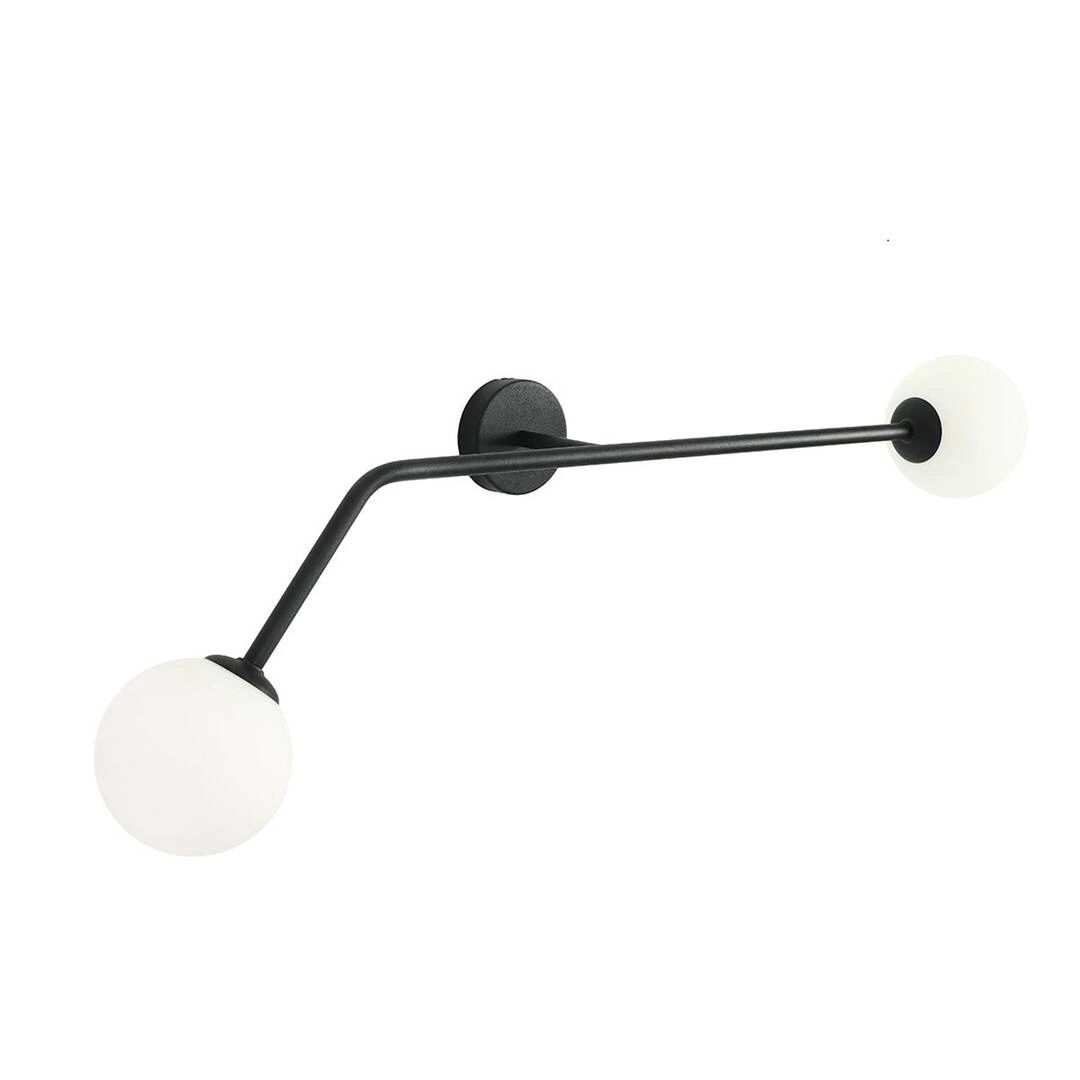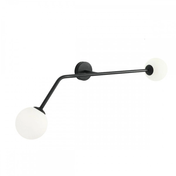 PURE 1064D1 to lampa ścienna z dwoma źródłami światła. Korpus lampy wykonano z wysokiej jakości metalu w kolorze czarnym. Klosze są z białego szkła. Kinkiet będzie idealnym wyborem do wnętrz urządzonych w stylu nowoczesnym oraz minimalistycznym. Doskonale będzie się prezentować w: salonie, jadalni, sypialni, pokoju młodzieżowym, lokalu, przedpokoju, korytarzu. Wysokość lampy to: 34 cm, szerokość 97 cm, głębokość 19,5 cm. Źródłem światła jest żarówka typu E14 o mocy max 40W w ilości 2 szt.