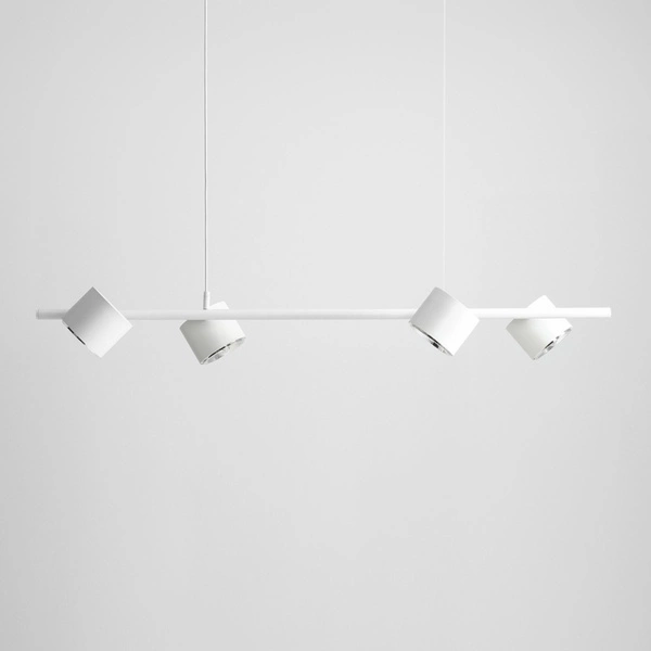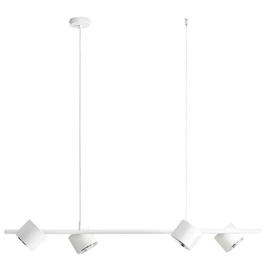 BOT 1046L to lampa wisząca z czterema źródłami światła. Wykonana została z wysokiej jakości metalu w kolorze białym. Klosze osadzone są na ruchomych przegubach co pozwala na regulację kąta padania światła. Lampa mocowana jest do sufitu z jednej strony na puszce z przewodem, z drugiej na stalowej lince. Oprawa będzie idealnym wyborem do wnętrz urządzonych w stylu nowoczesnym oraz minimalistycznym. Doskonale będzie się prezentować w: salonie, jadalni, sypialni, pokoju młodzieżowym, lokalu, kuchni, przedpokoju, biurze. Dużą zaletą jest możliwość regulacji wysokości. Wysokość maksymalna lampy to: 100 cm, szerokość 121 cm, głębokość 34 cm. Źródłem światła jest żarówka typu GU10 o mocy max 35W w ilości 4 szt.