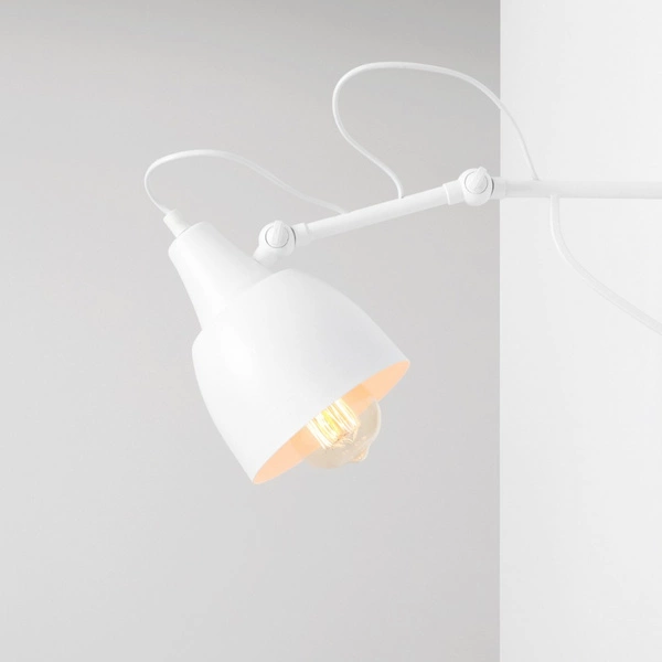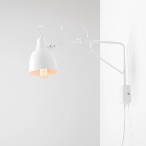 SOHO 1002C_M to lampa ścienna z jednym źródłem światła. Wykonana została z wysokiej jakości metalu w kolorze białym. Lampa ma możliwość regulacji kąta padania światła. Ramię lampy można obracać wzdłuż osi. Kinkiet wyposażony jest w przewód z wtyczką, dzięki czemu można go zamontować nawet tam gdzie nie ma stałej instalacji elektrycznej w ścianie. Oprawa będzie idealnym wyborem do wnętrz urządzonych w stylu industrialnym, loftowym oraz minimalistycznym. Doskonale będzie się prezentować w: salonie, jadalni, sypialni, pokoju młodzieżowym, lokalu, przedpokoju, gabinecie. Wysokość lampy to: 28,5 cm, szerokość 13 cm, głębokość 50 cm. Źródłem światła jest żarówka typu E27 o mocy max 60W w ilości 1 szt.