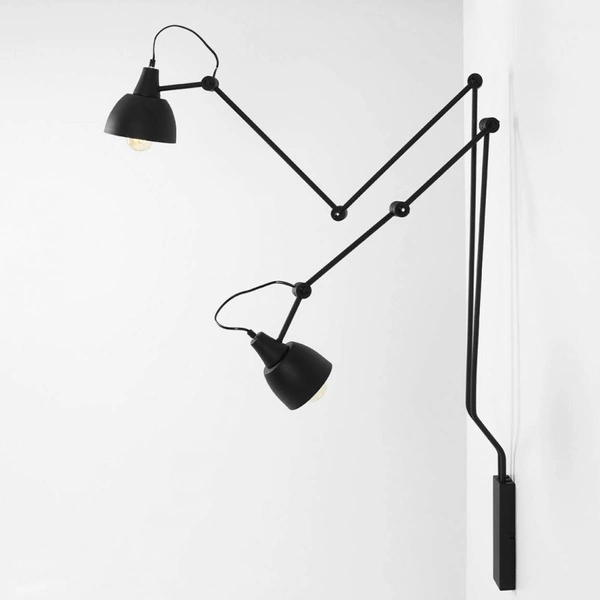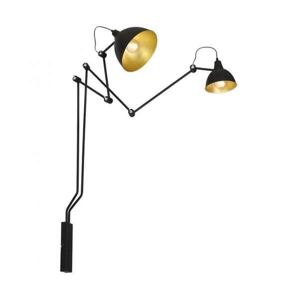 AIDA 2 843D to lampa ścienna z dwoma źródłami światła. Wykonana została z wysokiej jakości metalu w kolorze czarnym, klosze od środka są złote. Lampa posiada ruchome przeguby, dzięki którym można regulować kąt padania światła. Kinkiet będzie idealnym wyborem do wnętrz urządzonych w stylu industrialnym, loftowym oraz minimalistycznym. Doskonale będzie się prezentować w: salonie, jadalni, sypialni, pokoju młodzieżowym, lokalu, przedpokoju, gabinecie. Wysokość lampy to: 190 cm, szerokość 150 cm, głębokość 90 cm. Źródłem światła jest żarówka typu E27 o mocy max 60W w ilości 2 szt.