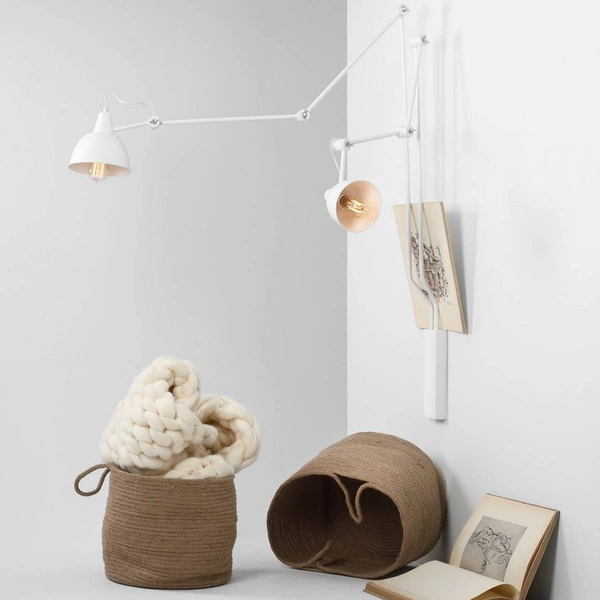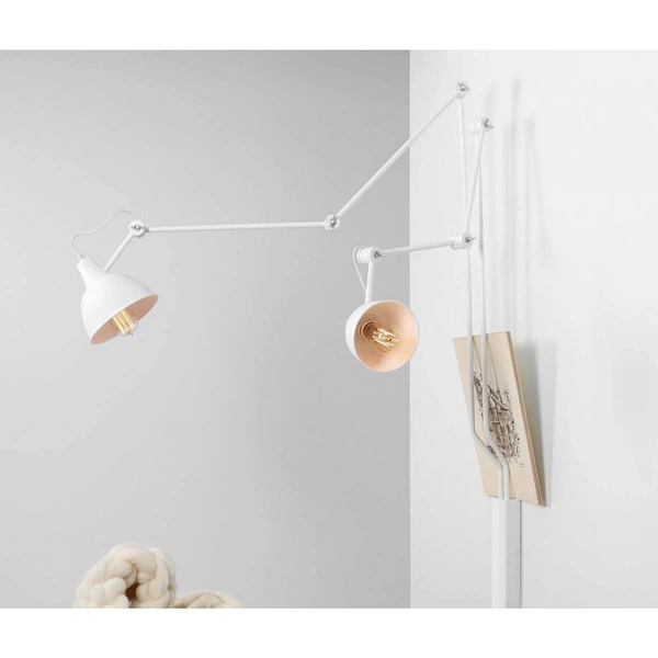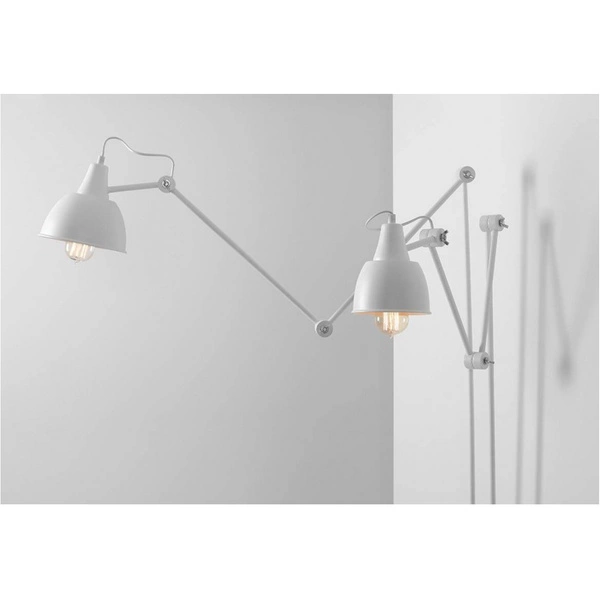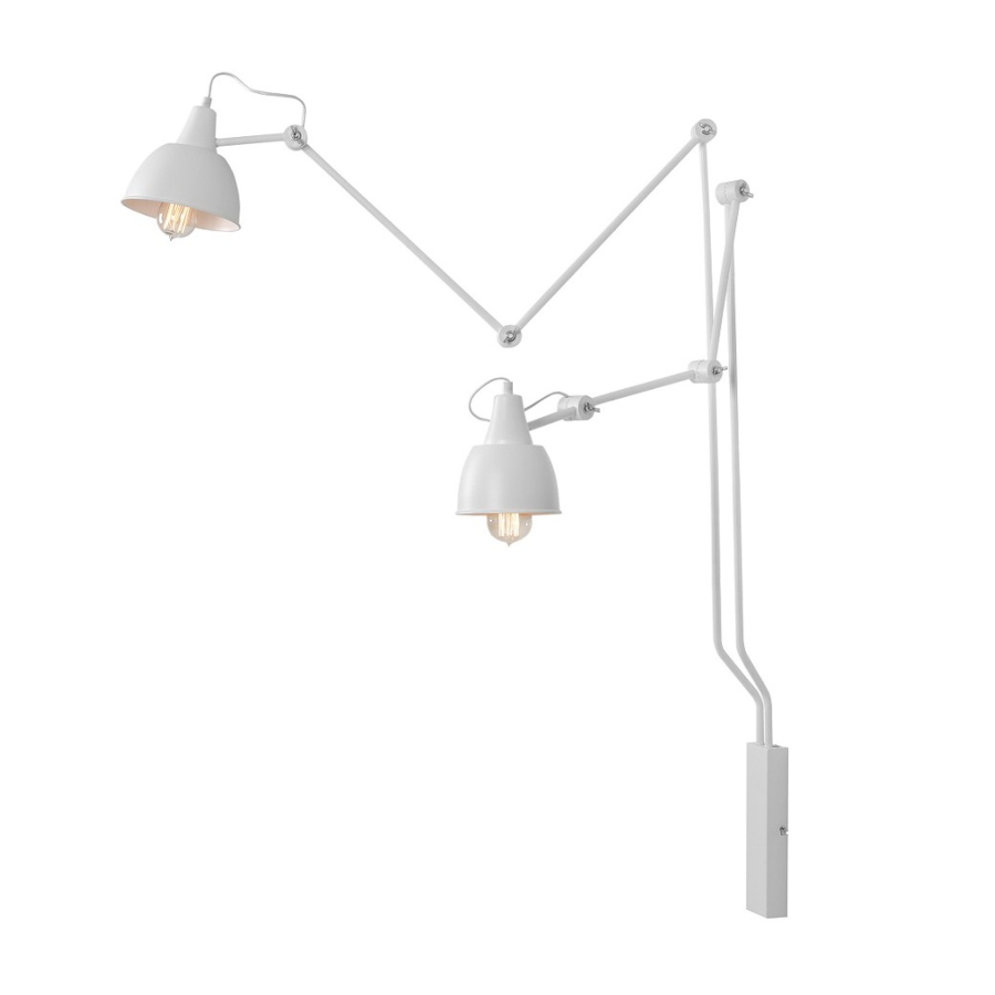 AIDA 2 814D to lampa ścienna z dwoma źródłami światła. Wykonana została z wysokiej jakości metalu w kolorze białym. Lampa posiada ruchome przeguby, dzięki którym można regulować kąt padania światła. Kinkiet będzie idealnym wyborem do wnętrz urządzonych w stylu industrialnym, loftowym oraz minimalistycznym. Doskonale będzie się prezentować w: salonie, jadalni, sypialni, pokoju młodzieżowym, lokalu, przedpokoju, gabinecie. Wysokość lampy to: 190 cm, szerokość 150 cm, głębokość 90 cm. Źródłem światła jest żarówka typu E27 o mocy max 60W w ilości 2 szt.