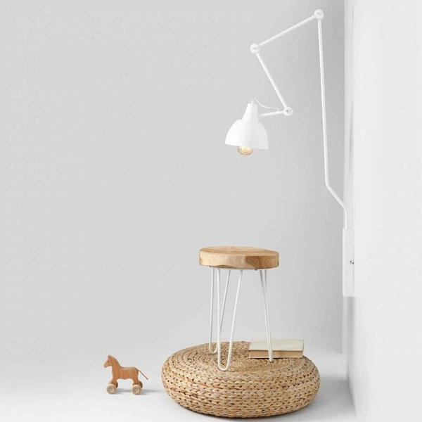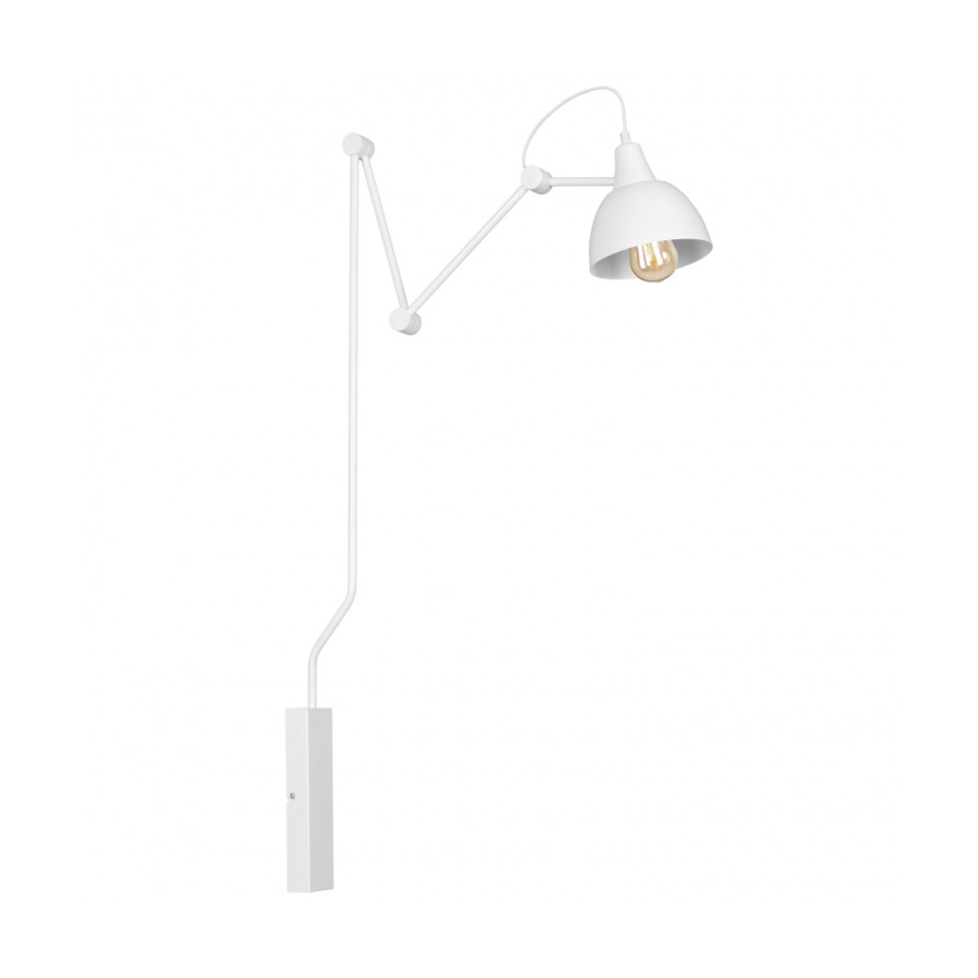 AIDA 814C1 to lampa ścienna z jednym źródłem światła. Wykonana została z wysokiej jakości metalu w kolorze białym. Lampa posiada ruchome przeguby, dzięki którym można regulować kąt padania światła. Kinkiet będzie idealnym wyborem do wnętrz urządzonych w stylu industrialnym, loftowym oraz minimalistycznym. Doskonale będzie się prezentować w: salonie, jadalni, sypialni, pokoju młodzieżowym, lokalu, przedpokoju, gabinecie. Wysokość lampy to: 150 cm, szerokość 100 cm, głębokość 17 cm. Źródłem światła jest żarówka typu E27 o mocy max 60W w ilości 1 szt.