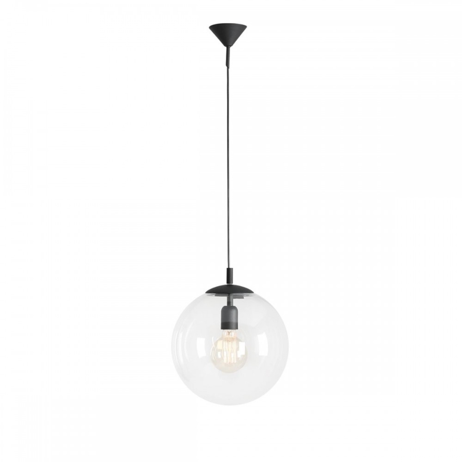 GLOBUS 562G5 to nowoczesna lampa wisząca z jednym źródłem światła. Zawiesie lampy wykonano z wysokiej jakości metalu w kolorze czarnym. Kulisty klosz jest z transparentnego szkła. Lampa będzie idealnym wyborem do wnętrz urządzonych w stylu nowoczesnym oraz minimalistycznym. Doskonale wkomponuje się do: salonu, jadalni, sypialni, pokoju młodzieżowego, gabinetu, lokalu, kuchni. Dużą zaletą jest możliwość regulacji wysokości. Wysokość maksymalna lampy to: 90 cm, szerokość 30 cm, głębokość 30 cm. Źródłem światła jest żarówka typu E27 o mocy max 60W w ilości 1 szt.