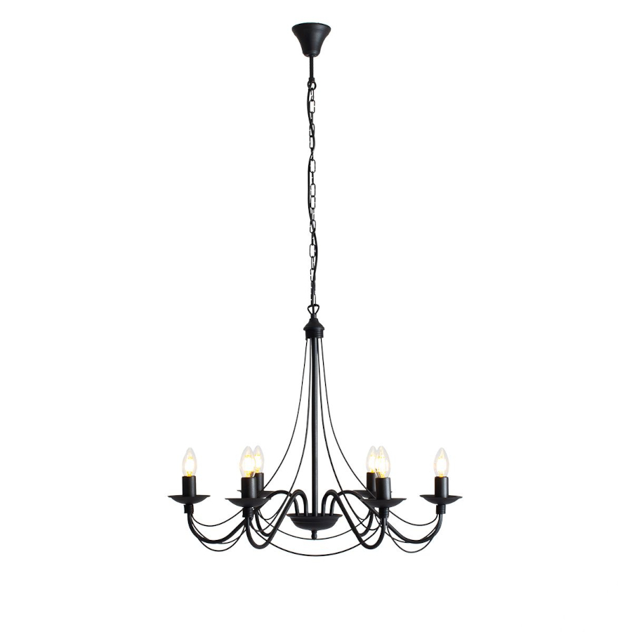 RÓŻA 6 397K1 to lampa wisząca z sześcioma źródłami światła. Wykonana została z wysokiej jakości metalu w kolorze czarnym. Lampa nie posiada kloszy co sprawia, że odsłonięte żarówki są elementami ozdobnymi dlatego warto wybrać ich dekoracyjny model (najkorzystniej prezentuje się z żarówkami w kształcie świeczki). Lampa będzie idealnym wyborem do wnętrz urządzonych w klasycznym stylu. Doskonale będzie się prezentować w: salonie, jadalni, sypialni, gabinecie, lokalu, salach weselnych, bankietowych. Dużą zaletą jest możliwość regulacji wysokości. Wysokość maksymalna lampy to: 108 cm, szerokość 65 cm, głębokość 65 cm. Źródłem światła jest żarówka typu E14 o mocy max 40W w ilości 6 szt.