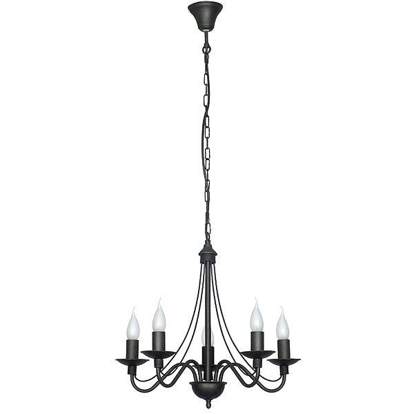RÓŻA 5 397F1 to lampa wisząca z pięcioma źródłami światła. Wykonana została z wysokiej jakości metalu w kolorze czarnym. Lampa nie posiada kloszy co sprawia, że odsłonięte żarówki są elementami ozdobnymi dlatego warto wybrać ich dekoracyjny model (najkorzystniej prezentuje się z żarówkami w kształcie świeczki). Lampa będzie idealnym wyborem do wnętrz urządzonych w klasycznym stylu. Doskonale będzie się prezentować w: salonie, jadalni, sypialni, gabinecie, lokalu, salach weselnych, bankietowych. Dużą zaletą jest możliwość regulacji wysokości. Wysokość maksymalna lampy to: 108 cm, szerokość 50 cm, głębokość 50 cm. Źródłem światła jest żarówka typu E14 o mocy max 40W w ilości 5 szt.