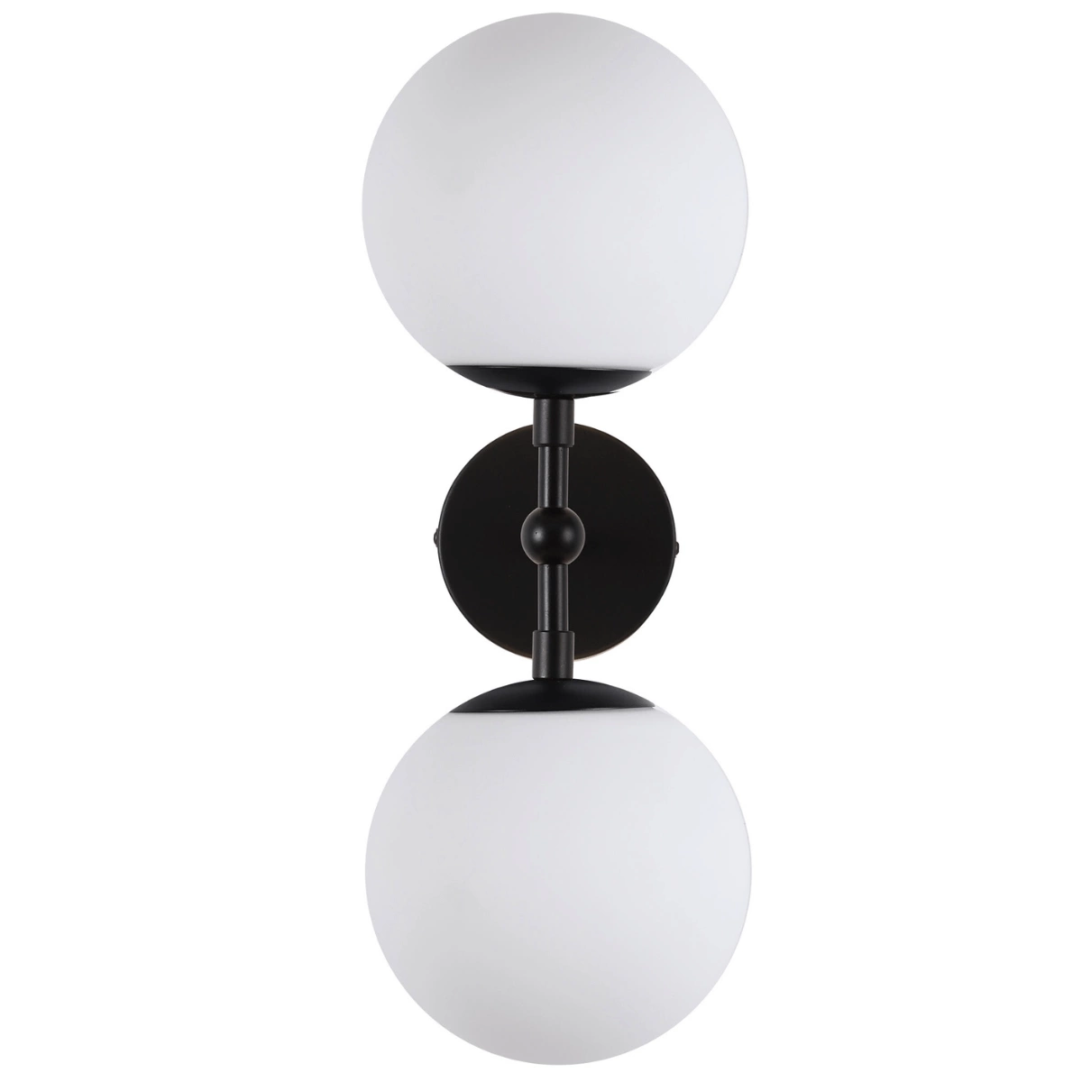 DORADO LP-002/2W BK to stylowa lampa ścienna z dwoma źródłami światła. Korpus lampy wykonano z wysokiej jakości metalu w kolorze czarnym. Klosze są z białego szkła. Oprawa będzie idealnym wyborem do wnętrz urządzonych w stylu klasycznym oraz nowoczesnym. Doskonale będzie się prezentować w: salonie, jadalni, sypialni, pokoju młodzieżowym, gabinecie, biurze, lokalu, przedpokoju, korytarzu. Wysokość lampy to: 42 cm, szerokość 15 cm, głębokość 20 cm. Źródłem światła jest żarówka typu E14 o mocy max 40W w ilości 2 szt.