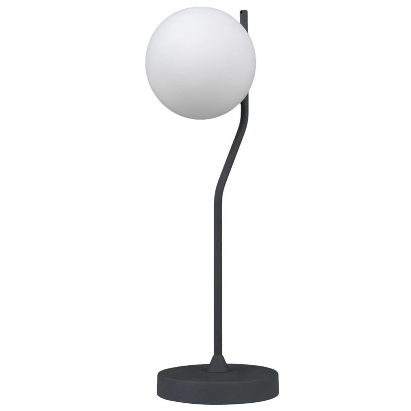CARIMI TB-3300-1-BK to nowoczesna lampa stołowa z jednym źródłem światła. Podstawę lampy wykonano z wysokiej jakości stali w kolorze grafitowym. Kulisty klosz jest z białego szkła. Oprawa będzie idealnym wyborem do wnętrz urządzonych w nowoczesnym stylu. Doskonale będzie się prezentować w: salonie, jadalni, sypialni, pokoju młodzieżowym, lokalu, gabinecie, biurze. Wysokość lampy to: 60 cm, szerokość 20 cm, długość 23,5 cm. Źródłem światła jest żarówka typu G9 o mocy max 5W w ilości 1 szt.
