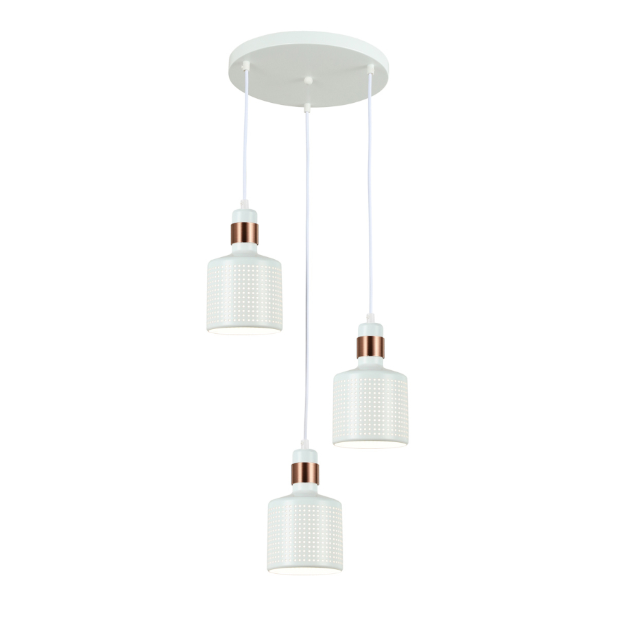 RESTENZA PND-2439-3-WH to lampa wisząca z trzema źródłami światła. Wykonana została z wysokiej jakości stali i aluminium w kolorze białym z miedzianymi detalami. Oprawa będzie idealnym wyborem do wnętrz urządzonych w stylu nowoczesnym oraz industrialnym. Doskonale będzie się prezentować w: salonie, jadalni, sypialni, pokoju młodzieżowym, gabinecie, lokalu, kuchni. Dużą zaletą jest możliwość regulacji wysokości. Wysokość maksymalna lampy to 100 cm, szerokość 38 cm, długość 38 cm. Źródłem światła jest żarówka typu E27 o mocy max 40W w ilości 3 szt.