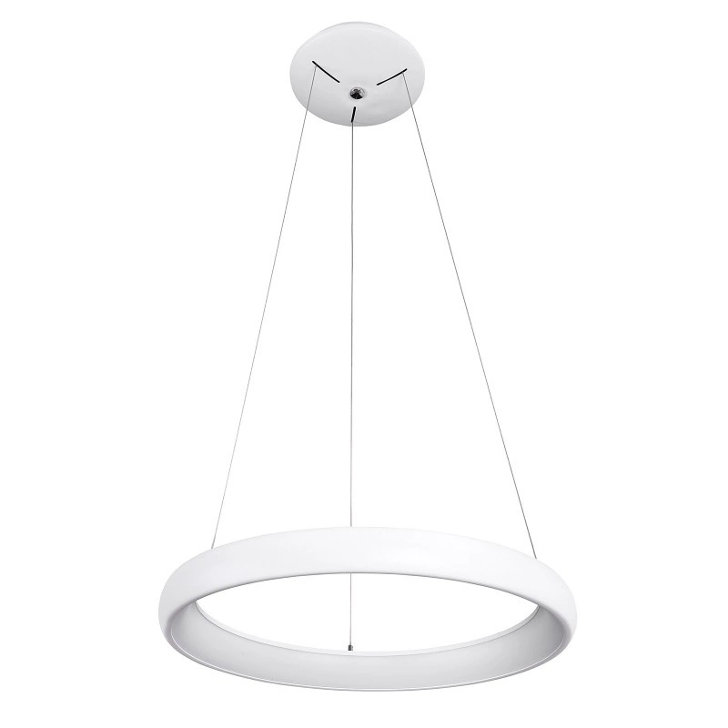 ALESSIA 5280-840RP-WH-3 to lampa wisząca ze zintegrowanym źródłem światła LED. Zawiesie wykonano z wysokiej jakości metalu w kolorze białym. Klosz lampy składa się z białego okręgu wewnątrz którego pod akrylową osłoną znajduje się źródło światła. Oprawa będzie idealnym wyborem do wnętrz urządzonych w nowoczesnym stylu. Doskonale będzie się prezentować w: salonie, jadalni, sypialni, pokoju młodzieżowym, gabinecie, lokalu, kuchni. Dużą zaletą jest możliwość regulacji wysokości. Wysokość maksymalna lampy to 120 cm, średnica 51 cm. W lampie zastosowano zintegrowane źródło światła LED o mocy 40W, ciepłej barwie 3000K i jasności 2200lm