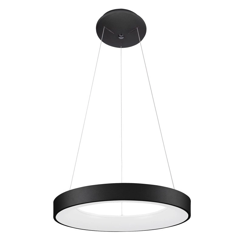 GIULIA 5304-840RP-BK-3 to lampa wisząca ze zintegrowanym źródłem światła LED. Zawiesie wykonano z wysokiej jakości metalu w kolorze czarnym. Klosz lampy składa się z czarnego okręgu wewnątrz którego pod akrylową osłoną znajduje się źródło światła. Oprawa będzie idealnym wyborem do wnętrz urządzonych w nowoczesnym stylu. Doskonale będzie się prezentować w: salonie, jadalni, sypialni, pokoju młodzieżowym, gabinecie, lokalu, kuchni. Dużą zaletą jest możliwość regulacji wysokości. Wysokość maksymalna lampy to 120 cm, średnica 48 cm. W lampie zastosowano zintegrowane źródło światła LED o mocy 40W, ciepłej barwie 3000K i jasności 2200lm