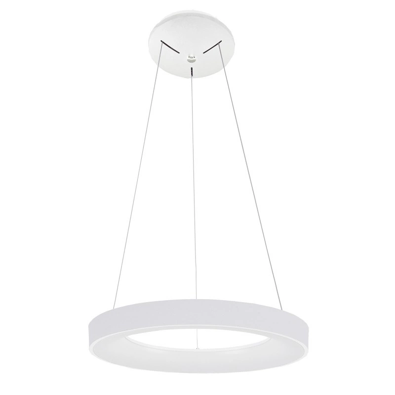 GIULIA 5304-840RP-WH-3 to lampa wisząca ze zintegrowanym źródłem światła LED. Zawiesie wykonano z wysokiej jakości metalu w kolorze białym. Klosz lampy składa się z białego okręgu wewnątrz którego pod akrylową osłoną znajduje się źródło światła. Oprawa będzie idealnym wyborem do wnętrz urządzonych w nowoczesnym stylu. Doskonale będzie się prezentować w: salonie, jadalni, sypialni, pokoju młodzieżowym, gabinecie, lokalu, kuchni. Dużą zaletą jest możliwość regulacji wysokości. Wysokość maksymalna lampy to 120 cm, średnica 48 cm. W lampie zastosowano zintegrowane źródło światła LED o mocy 40W, ciepłej barwie 3000K i jasności 2200lm