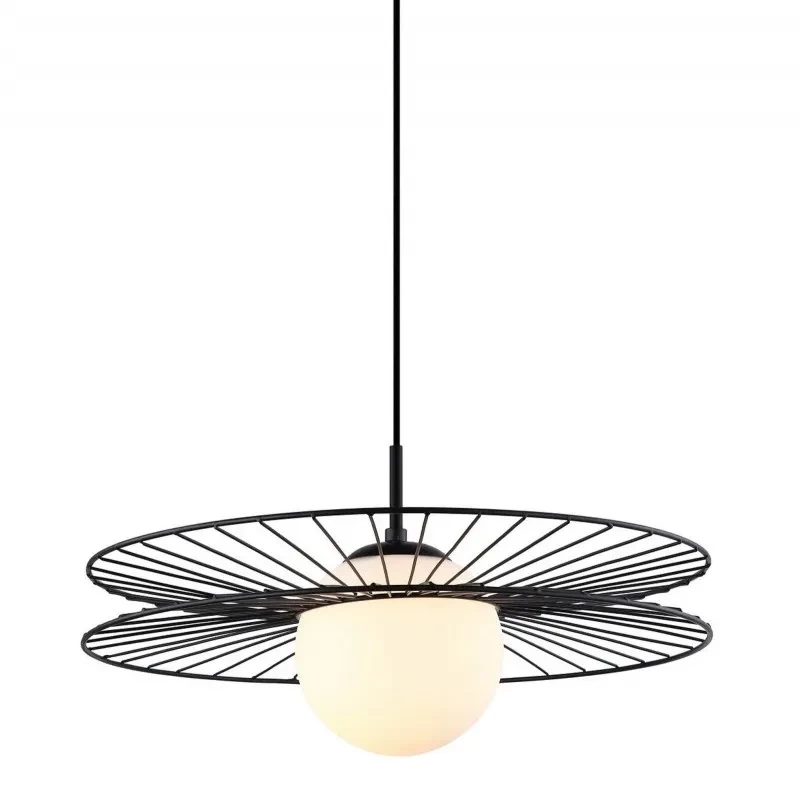 SANDY MDM-4002/1 GD to lampa wisząca z jednym źródłem światła. Zawiesie lampy wykonano z wysokiej jakości stali w kolorze czarnym. Lampa posiada podwójny klosz składający się z białej szklanej kuli ozdobionej kloszem z drutu w kolorze złotym. Oprawa będzie idealnym wyborem do wnętrz urządzonych w stylu nowoczesnym oraz klasycznym. Doskonale będzie się prezentować w: salonie, jadalni, sypialni, pokoju młodzieżowym, gabinecie, lokalu, przedpokoju, kuchni. Dużym atutem jest możliwość regulacji wysokości. Wysokość maksymalna lampy to: 90 cm, średnica 45 cm. Źródłem światła jest żarówka typu E27 o mocy max 40W w ilości 1 szt.
