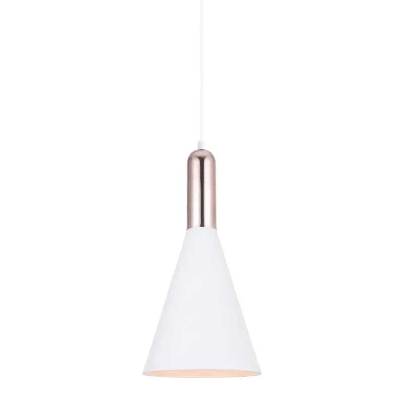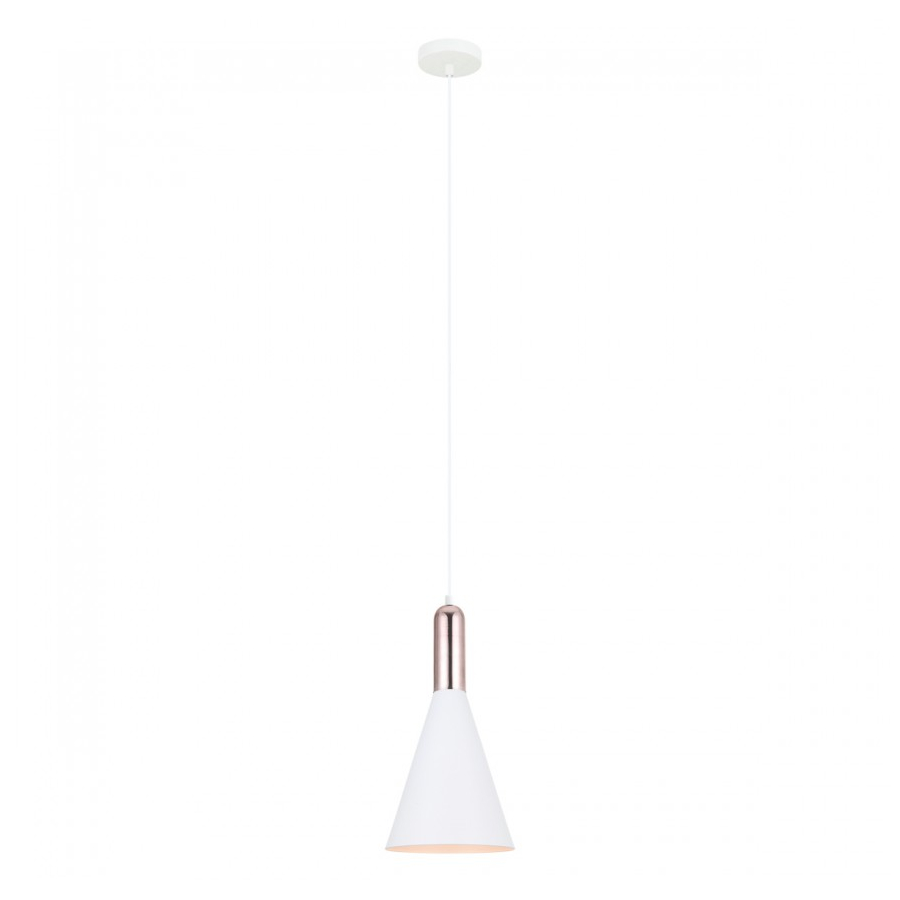 KHALEO MDM-3030/1 W+COP to lampa wisząca z jednym źródłem światła. Wykonana została z wysokiej jakości stali w kolorze białym. Elementem wyróżniającym lampy jest biały klosz w kształcie stożka ozdobiony miedzianym elementem. Oprawa będzie idealnym wyborem do wnętrz urządzonych w stylu industrialnym, loftowym oraz retro. Doskonale będzie się prezentować w: salonie, jadalni, sypialni, pokoju młodzieżowym, gabinecie, lokalu, kuchni. Dużym atutem jest możliwość regulacji wysokości. Wysokość maksymalna lampy to: 112 cm, średnica 19 cm. Źródłem światła jest żarówka typu E27 o mocy max 60W w ilości 1 szt.