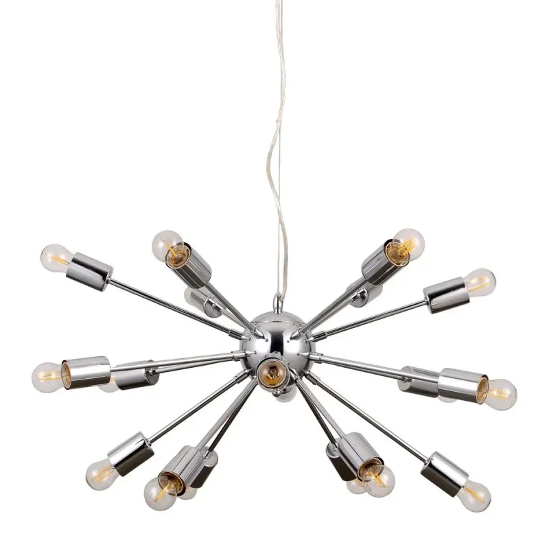 THEO AD20000-18A to lampa wisząca z osiemnastoma źródłami światła. Wykonana została z wysokiej jakości stali w kolorze chromowym. Lampa nie posiada kloszy co sprawia, że odsłonięte żarówki są elementami ozdobnymi dlatego warto wybrać ich dekoracyjny model. Oprawa będzie idealnym wyborem do wnętrz urządzonych w nowoczesnym stylu. Doskonale będzie się prezentować w: salonie, jadalni, sypialni, pokoju młodzieżowym, gabinecie, lokalu, przedpokoju, kuchni. Dużą zaletą jest możliwość regulacji wysokości. Wysokość maksymalna lampy to: 120 cm, szerokość 64 cm, długość 64 cm. Źródłem światła jest żarówka typu E27 o mocy max 40W w ilości 18 szt.
