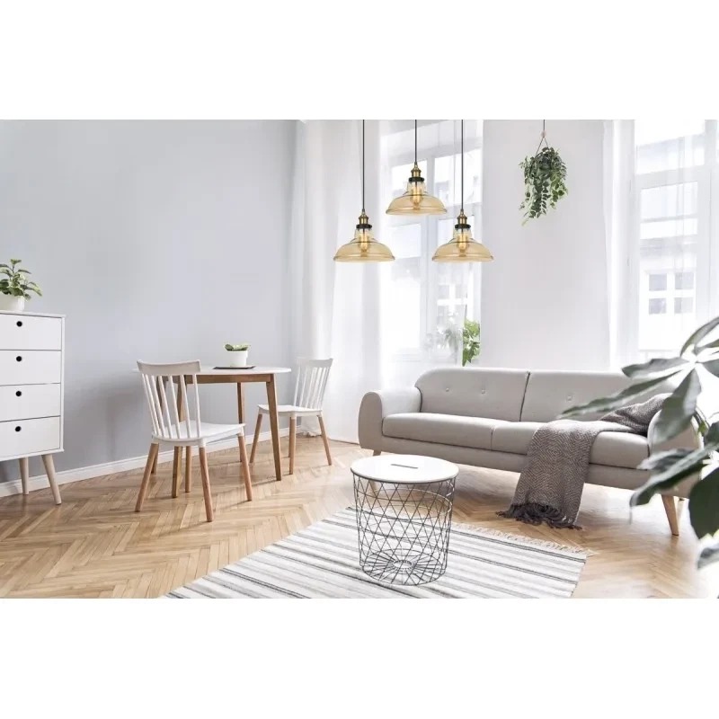 HUBERT MDM-2381/3 GD+AMB to lampa wisząca z trzema źródłami światła. Zawiesie lampy wykonano z wysokiej jakości stali w kolorze czarnym z ozdobnymi oprawkami żarówek koloru złotego. Klosze są z bursztynowego szkła. Oprawa będzie idealnym wyborem do wnętrz urządzonych w stylu industrialnym, loftowym oraz retro. Doskonale będzie się prezentować w: salonie, jadalni, sypialni, pokoju młodzieżowym, gabinecie, lokalu, biurze, przedpokoju, kuchni. Dużym atutem jest możliwość regulacji wysokości. Wysokość maksymalna lampy to: 98 cm, szerokość 28 cm, długość 78 cm. Źródłem światła jest żarówka typu E27 o mocy max 40W w ilości 3 szt.