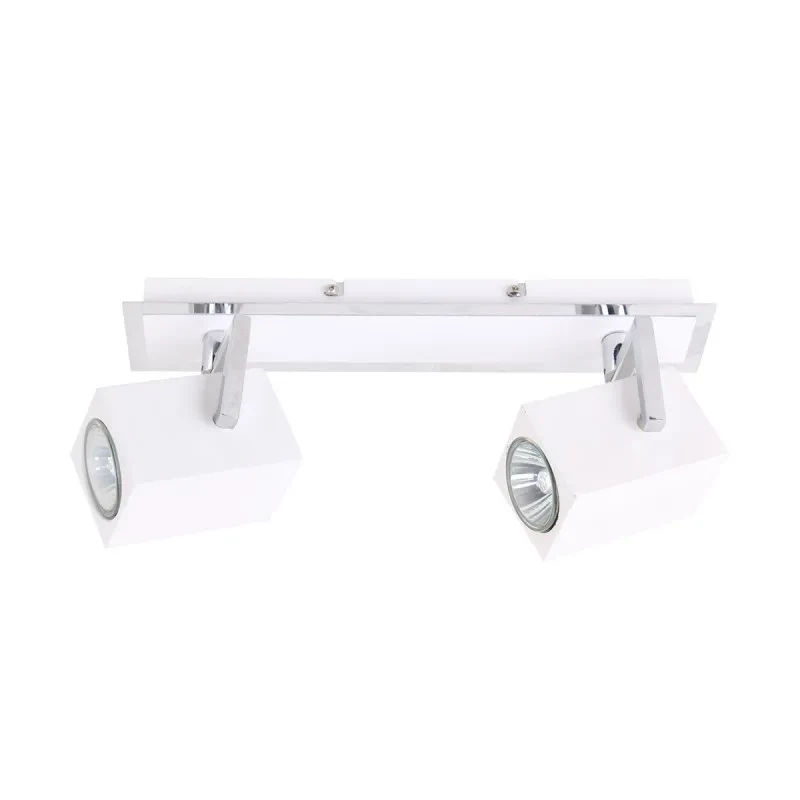 MATEO FH31152AJA3 to lampa sufitowa z dwoma źródłami światła. Wykonana została z wysokiej jakości metalu w kolorze białym z chromowymi detalami. Klosze lampy mają możliwość regulacji położenia. Oprawa będzie idealnym wyborem do nowoczesnych oraz minimalistycznych wnętrz. Doskonale będzie się prezentować w: salonie, jadalni, sypialni, pokoju młodzieżowym, gabinecie, biurze, lokalu, przedpokoju, korytarzu, kuchni. Wysokość lampy to: 13 cm, szerokość 9,5 cm, długość 32 cm. Źródłem światła jest żarówka typu GU10 o mocy max 35W w ilości 2 szt.