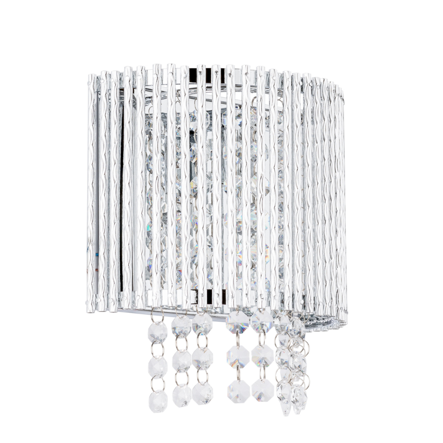ANABELLA W0207-01D-F4QL to lampa ścienna z jednym źródłem światła. Wykonana została z wysokiej jakości metalu w kolorze srebrnym. Klosz lampy ozdobiony jest kaskadą zwisających transparentnych kryształków. Kinkiet będzie idealnym wyborem do wnętrz urządzonych w nowoczesnym stylu. Doskonale będzie się prezentować w: salonie, jadalni, sypialni, pokoju młodzieżowym, gabinecie, lokalu, przedpokoju, korytarzu. Wysokość lampy to 21 cm, szerokość 10 cm, długość 19 cm. Źródłem światła jest żarówka typu G9 o mocy max 42W w ilości 1 szt.