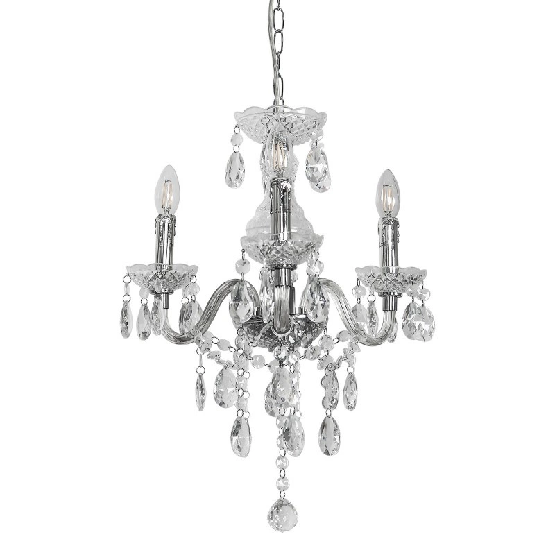 WHIZ L.90690/3CLE to lampa wisząca z trzema źródłami światła. Wykonana została z wysokiej jakości metalu w kolorze chromowym z ozdobnymi transparentnymi szkiełkami i brelokami. Lampa nie posiada kloszy co sprawa że odsłonięte żarówki są elementami ozdobnymi dlatego warto wybrać ich dekoracyjny model (najkorzystniej prezentuje się z żarówkami w kształcie świeczki). Żyrandol będzie idealnym wyborem do wnętrz urządzonych w klasycznym stylu. Doskonale będzie się prezentować w: salonie, jadalni, sypialni, pokoju młodzieżowym, gabinecie, lokalu, kuchni. Dużą zaletą jest możliwość regulacji wysokości. Wysokość maksymalna lampy to 113 cm, szerokość 48 cm, długość 48 cm. Źródłem światła jest żarówka typu E14 o mocy max 40W w ilości 3 szt.