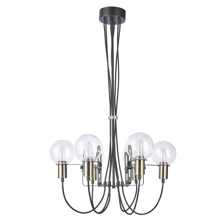 GIANNI MD16096-6B to lampa wisząca z sześcioma źródłami światła. Wykonana została z wysokiej jakości metalu w kolorze czarnym ze wstawkami w kolorze brązu antycznego, klosze są z przeźroczystego szkła. Oprawa będzie idealnym wyborem do wnętrz urządzonych w stylu nowoczesnym, industrialnym oraz loftowym. Doskonale będzie się prezentować w: salonie, jadalni, sypialni, pokoju młodzieżowym, gabinecie, lokalu, kuchni. Dużym atutem jest możliwość regulacji wysokości. Wysokość maksymalna lampy to 100 cm, średnica 61 cm. Źródłem światła jest żarówka typu E14 o mocy max 40W w ilości 6 szt.