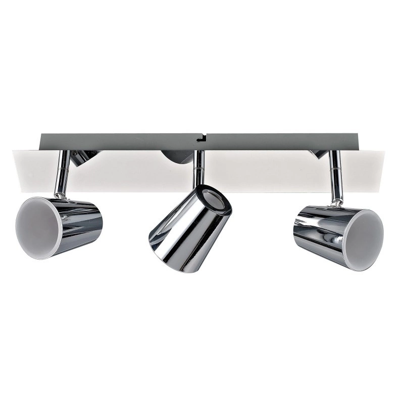 ELMIRA HP-503A-03-8571A to lampa sufitowa z trzema źródłami światła. Wykonana została z wysokiej jakości metalu w kolorze chromowym. Klosze lampy mają możliwość regulacji kąta padania światła. Oprawa będzie idealnym wyborem do nowoczesnych oraz minimalistycznych wnętrz. Doskonale będzie się prezentować w: salonie, jadalni, sypialni, pokoju młodzieżowym, gabinecie, biurze, lokalu, przedpokoju, korytarzu, kuchni. Wysokość lampy to: 7,5 cm, szerokość 41,5 cm, długość 14 cm. W lampie zastosowano źródła światła LED o łącznej mocy 15W, ciepłej barwie 3000K i jasności 1500lm