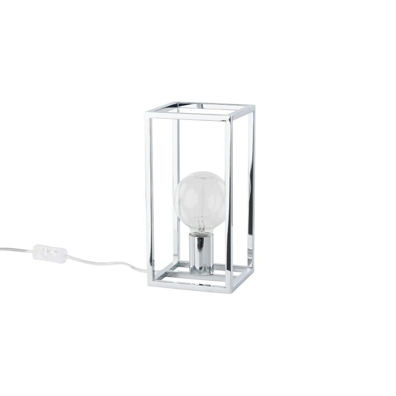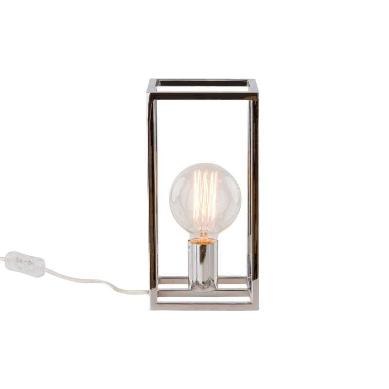 SIGALO MT-BR4366-T1 CH to lampa stołowa z jednym źródłem światła. Wykonana została z wysokiej jakości metalu w kolorze chromowym. Klosz lampy stanowi klatka wewnątrz której znajduje się oprawka na żarówkę. Kształt klosza sprawia że odsłonięta żarówka jest elementem ozdobnym dlatego warto wybrać jej dekoracyjny model. Oprawa będzie idealnym wyborem do wnętrz urządzonych w stylu nowoczesnym, industrialnym oraz loftowym. Doskonale będzie się prezentować w: salonie, jadalni, sypialni, pokoju młodzieżowym, gabinecie, lokalu, biurze. Wysokość lampy to 28 cm, szerokość 14 cm, długość 14 cm. Źródłem światła jest żarówka typu E27 o mocy max 60W w ilości 1 szt.