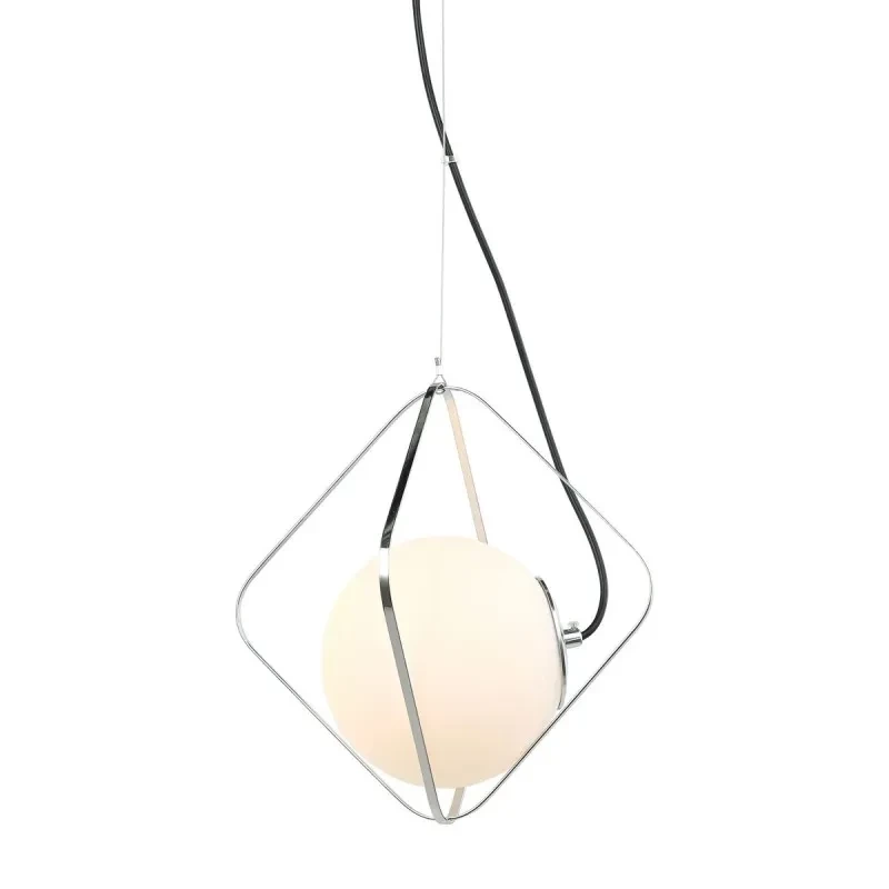 CANTO PEN-5696-1-BKCR to lampa wisząca z jednym źródłem światła. Korpus lampy wykonano z wysokiej jakości stali w kolorze czarnym z chromowymi wstawkami. Klosz jest z białego szkła. Oprawa będzie idealnym wyborem do wnętrz urządzonych w nowoczesnym stylu. Doskonale będzie się prezentować w: salonie, jadalni, sypialni, pokoju młodzieżowym, gabinecie, lokalu, biurze, kuchni. Dużą zaletą jest możliwość regulacji wysokości. Wysokość maksymalna lampy to: 100 cm, szerokość 26 cm, długość 26 cm. Źródłem światła jest żarówka typu E27 o mocy max 40W w ilości 1 szt.