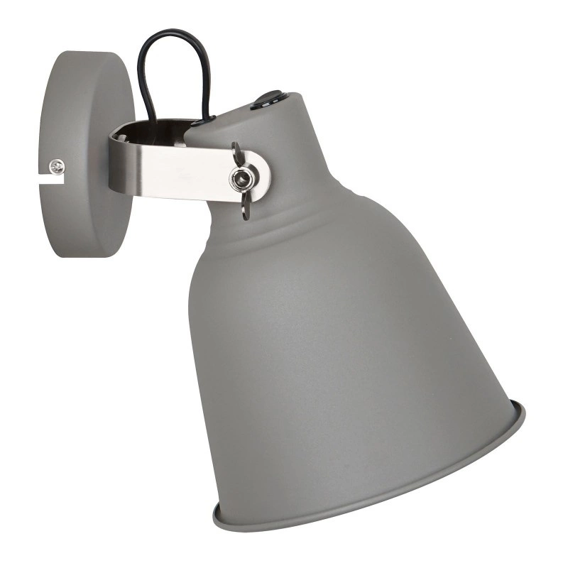 VIDAL MB-HN5213L GR+S.NICK to nowoczesna lampa ścienna z jednym źródłem świata. Wykonana została z wysokiej jakości metalu w kolorze szarym z satynowanymi wstawkami. Lampa ma możliwość regulacji kąta padania światła. Kinkiet będzie idealnym wyborem do wnętrz urządzonych w stylu industrialnym, loftowym oraz retro. Doskonale będzie się prezentować w: salonie, jadalni, sypialni, pokoju młodzieżowym, gabinecie, lokalu, korytarzu. Dodatkowym atutem jest wyłącznik na kloszu. Wysokość lampy to: 22,5 cm, szerokość 16 cm, długość 20 cm. Źródłem światła jest żarówka typu E27 o mocy max 40W w ilości 1 szt.