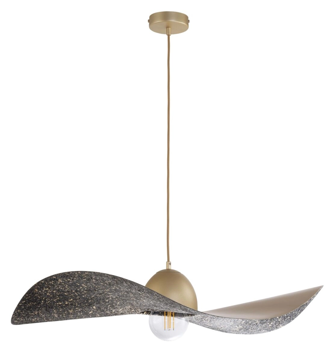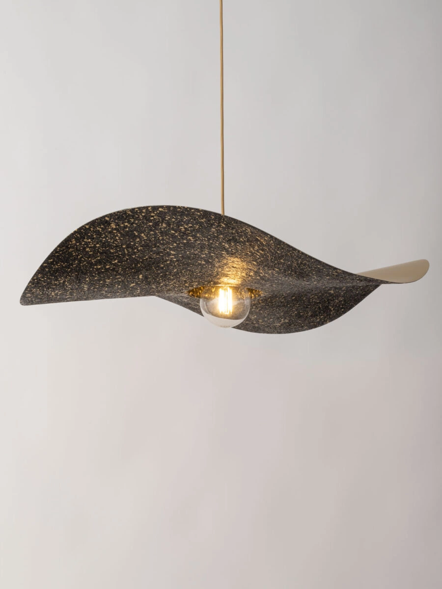 Klosz lampy inspirowany tradycyjnym szerokim kapeluszem o opływowej formie.