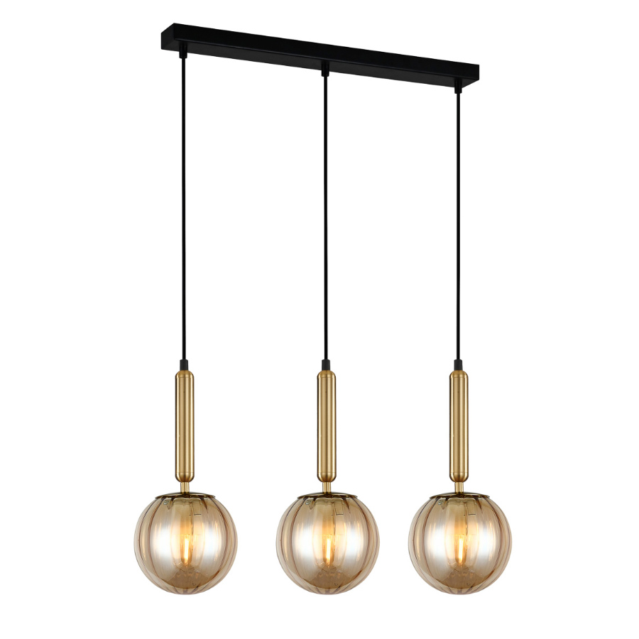 Lampa wisząca RAVENA dł. 65cm 3xE27 | mosiądz/bursztynowy