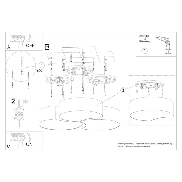 Plafon CIRCLE 3B, SL.1052, biały, 6x60W E27