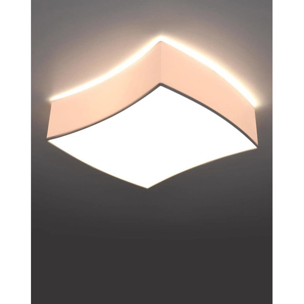 SQUARE SL.1054 to nowoczesna lampa sufitowa z dwoma źródłami światła. Wykonana została z PVC w kolorze białym. Plafon będzie idealnym wyborem do wnętrz urządzonych w nowoczesnym stylu. Doskonale będzie się prezentować w: salonie, jadalni, sypialni, pokoju młodzieżowym, gabinecie, biurze, lokalu, przedpokoju, korytarzu. Wysokość lampy to: 11,5 cm, szerokość 35 cm, długość 39 cm. Źródłem światła jest żarówka typu E27 o mocy max 60W w ilości 2 szt.