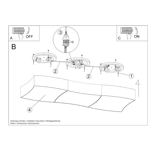 • Plafon SQUARE 3, SL.1055, biały, 6x60W E27