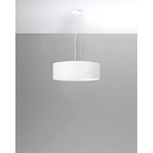 ROLLO SL.0830 to lampa wisząca z trzema źródłami światła. Wykonana została z wysokiej jakości stali, tkaniny i PVC w kolorze białym. Oprawa będzie idealnym wyborem do wnętrz urządzonych w stylu klasycznym oraz nowoczesnym. Doskonale będzie się prezentować w: salonie, jadalni, sypialni, pokoju młodzieżowym, gabinecie, biurze, lokalu, kuchni. Dużą zaletą jest możliwość regulacji wysokości. Wysokość maksymalna lampy to: 106 cm, średnica 45 cm. Źródłem światła jest żarówka typu E27 o mocy max 60W w ilości 3 szt.