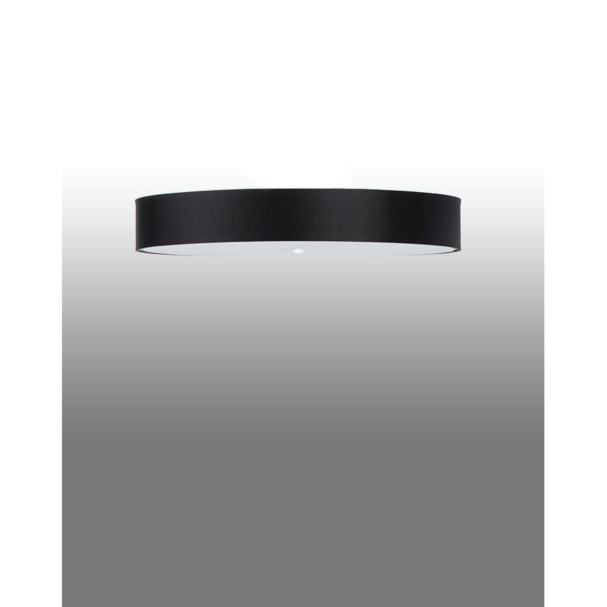 SKALA SL.0816 to lampa sufitowa z sześcioma źródłami światła. Korpus lampy wykonano z wysokiej jakości stali. Abażur jest z czarnej tkaniny zamknięty od spodu mleczną taflą szkła. Oprawa będzie idealnym wyborem do wnętrz urządzonych w stylu: klasycznym, skandynawskim, industrialnym oraz loftowym. Doskonale będzie się prezentować w: salonie, jadalni, sypialni, pokoju młodzieżowym, gabinecie, biurze, lokalu, kuchni. Wysokość lampy to: 20 cm, średnica 90 cm. Źródłem światła jest żarówka typu E27 o mocy max 60W w ilości 6 szt.