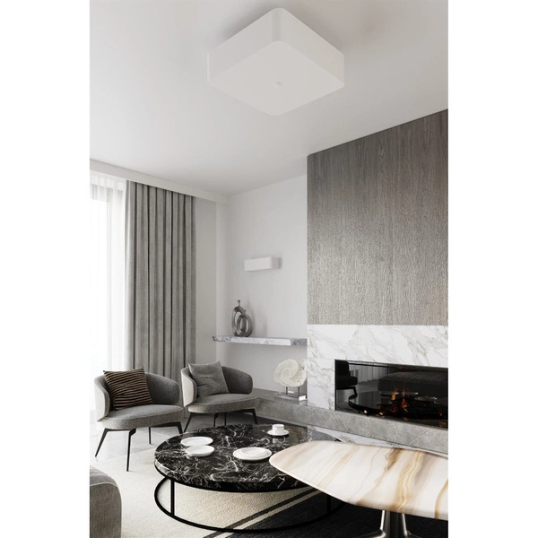 LOKKO SL.0825 to nowoczesna lampa sufitowa z pięcioma źródłami światła. Korpus lampy wykonano z wysokiej jakości stali. Abażur jest z białej tkaniny zamknięty od spodu mleczną taflą szkła. Oprawa będzie idealnym wyborem do wnętrz urządzonych w stylu nowoczesnym oraz minimalistycznym. Doskonale będzie się prezentować w: salonie, jadalni, sypialni, pokoju młodzieżowym, gabinecie, biurze, lokalu, kuchni. Wysokość lampy to: 25 cm, szerokość 55 cm, długość 55 cm. Źródłem światła jest żarówka typu E27 o mocy max 60W w ilości 5 szt.
