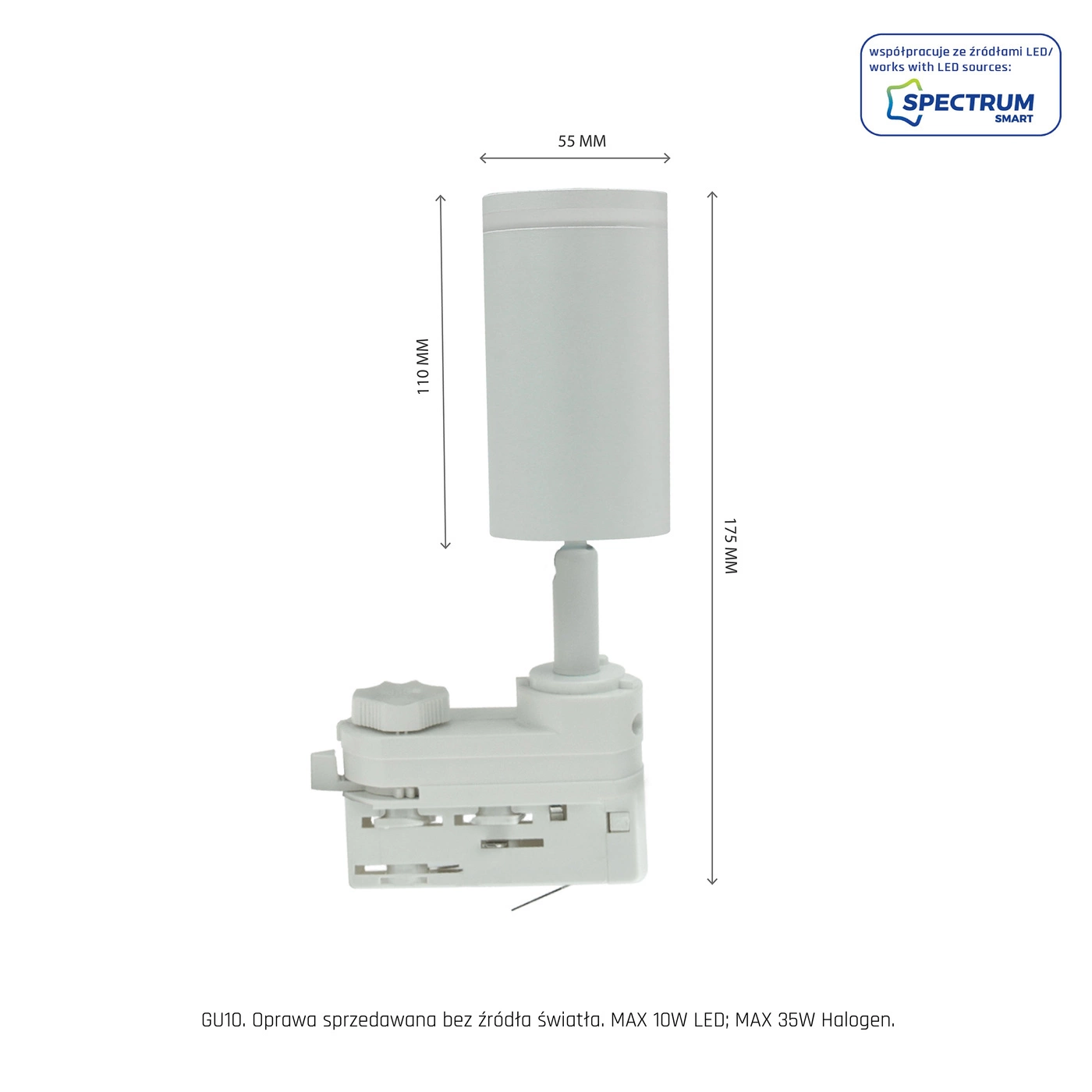 Oprawa LED przeznaczona jest do systemu szynowego marki SPECTRUM.