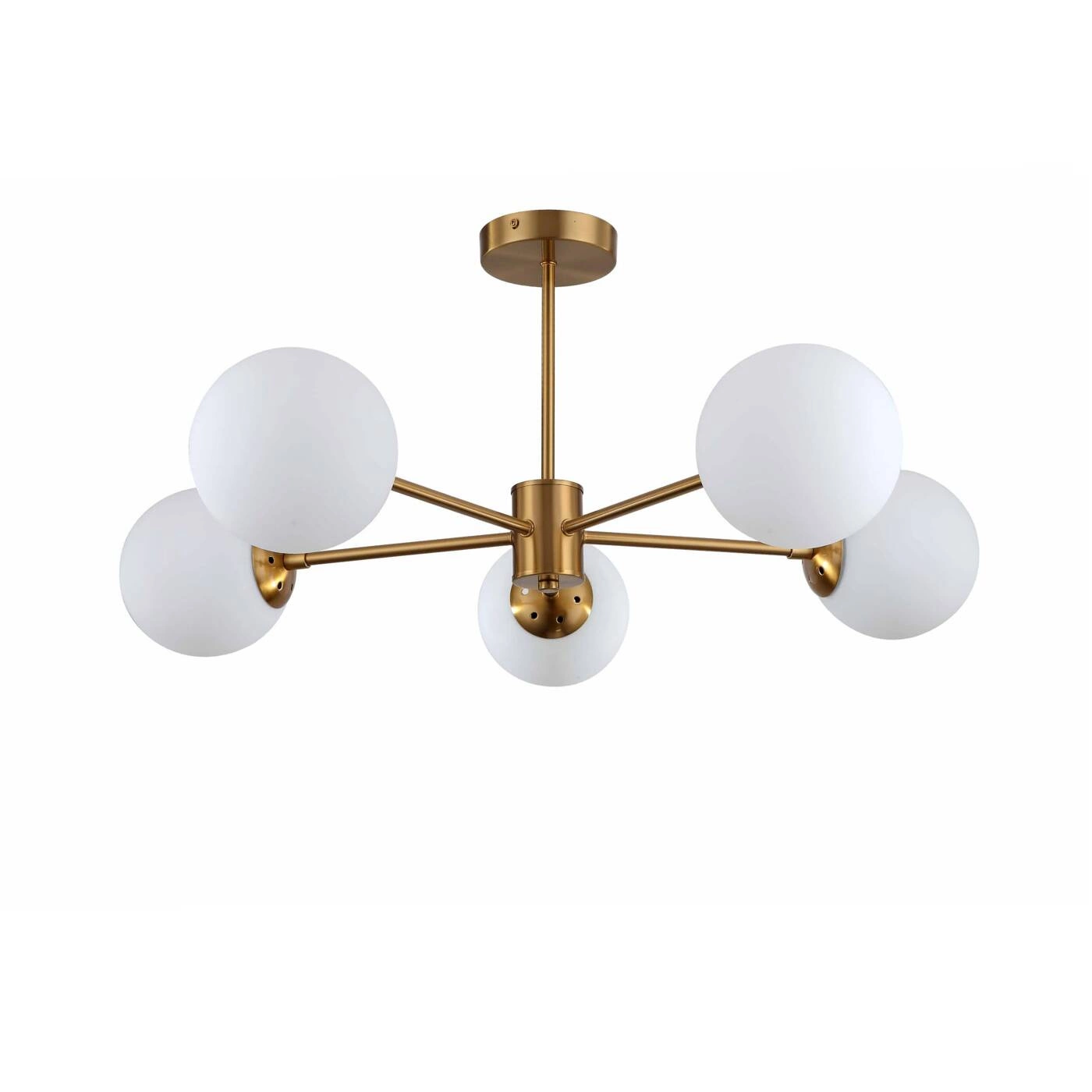 ROMA LP-1345/5P GD to stylowa lampa wisząca z pięcioma źródłami światła. Korpus lampy wykonano z wysokiej jakości metalu w kolorze złotym. Klosze są z białego szkła. Oprawa będzie idealnym wyborem do wnętrz urządzonych w stylu klasycznym oraz nowoczesnym. Doskonale będzie się prezentować w: salonie, jadalni, sypialni, pokoju młodzieżowym, gabinecie, biurze, lokalu, kuchni. Wysokość lampy to: 30 cm, szerokość 78,5 cm, głębokość 78,5 cm. Źródłem światła jest żarówka typu E14 o mocy max 40W w ilości 5 szt.