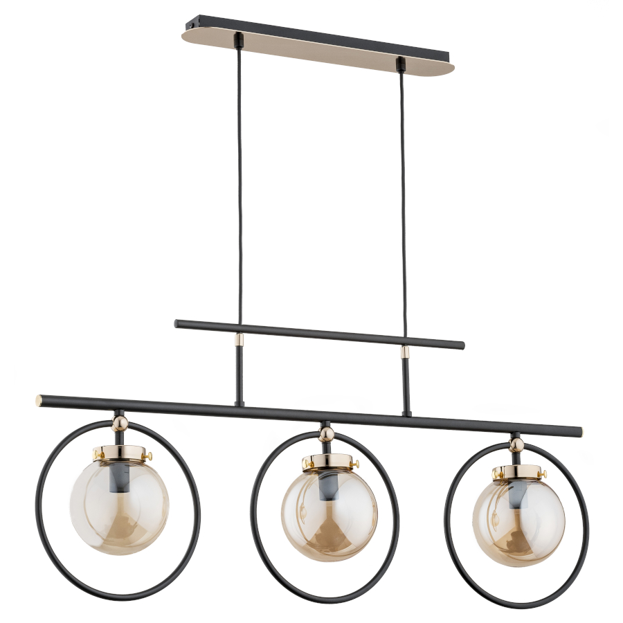 Elementy metalowe wykończone są w kolorze czarnym ze złotymi wstawkami, zakończona 3 szklanymi kloszami.