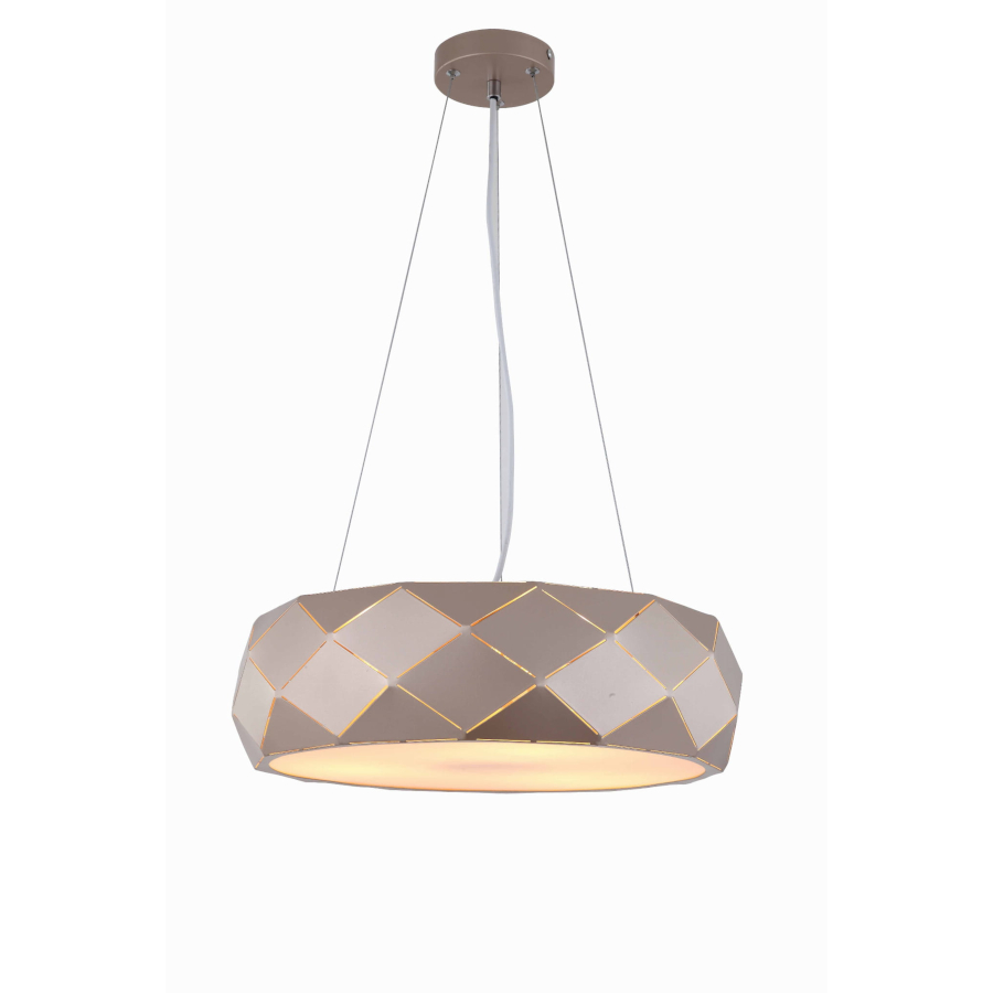 REUS LP-8069/1P GD to stylowa lampa wisząca z trzema źródłami światła. Wykonana została z wysokiej jakości metalu w kolorze złotym. Model ten charakteryzuje się kloszem w kształcie pierścienia, który z zewnątrz zawiera geometryczne wzory a od spodu jest zamknięty mleczną osłoną z tworzywa. Oprawa będzie idealnym wyborem do wnętrz urządzonych w stylu nowoczesnym oraz glamour. Doskonale będzie się prezentować w: salonie, jadalni, sypialni, pokoju młodzieżowym, gabinecie, lokalu, kuchni. Dużym atutem jest możliwość regulacji wysokości. Wysokość maksymalna lampy to: 100 cm, szerokość 45 cm, głębokość 45 cm. Źródłem światła jest żarówka typu E27 o mocy max 40W w ilości 3 szt.