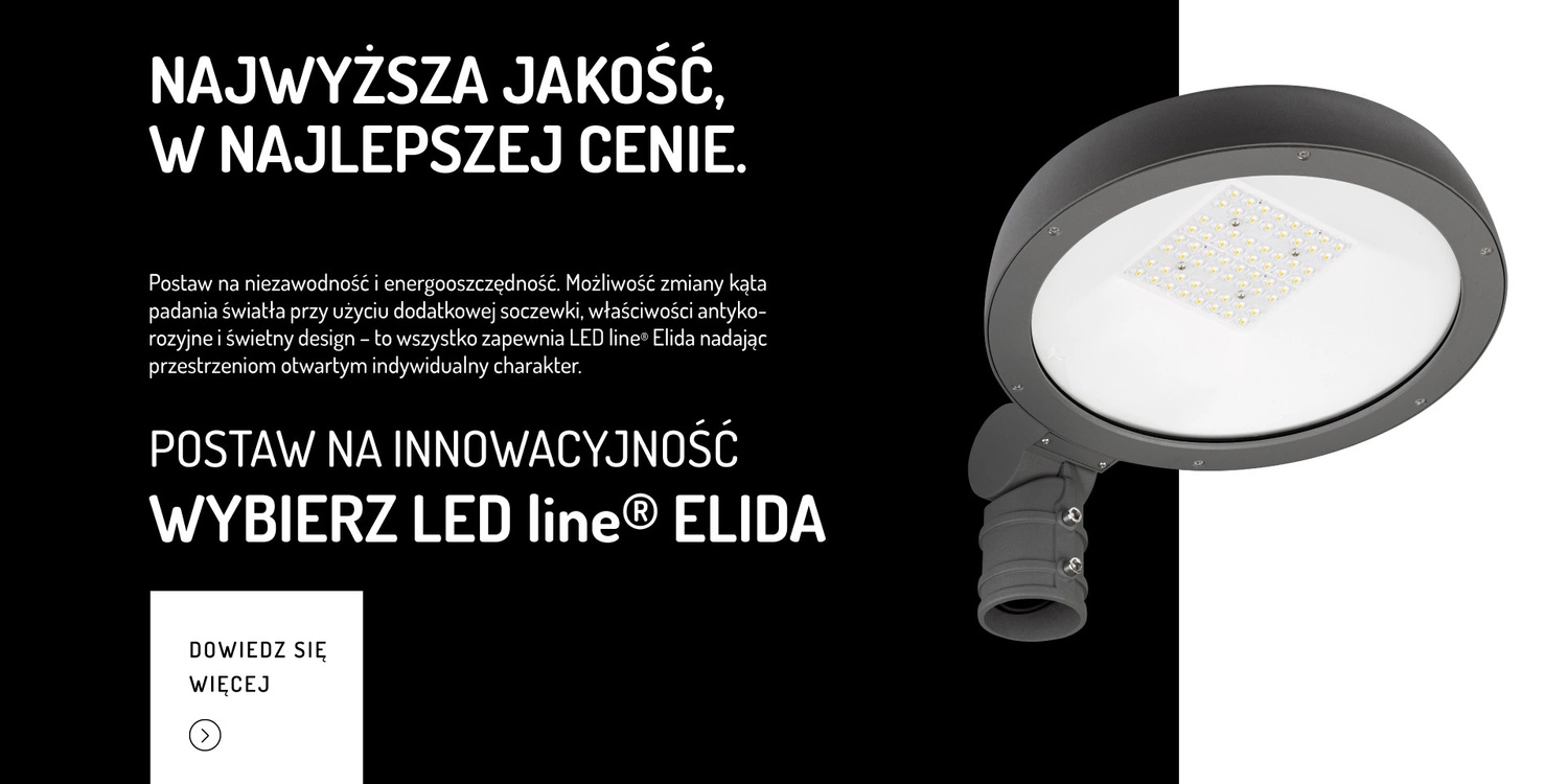 Oprawę ELIDA cechuje wyjątkowa wytrzymałość i odporność na działanie czynników zewnętrznych, które w dużym stopniu mają wpływ na żywotność tego typu opraw.