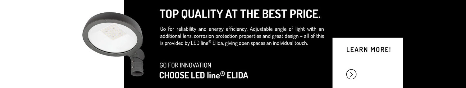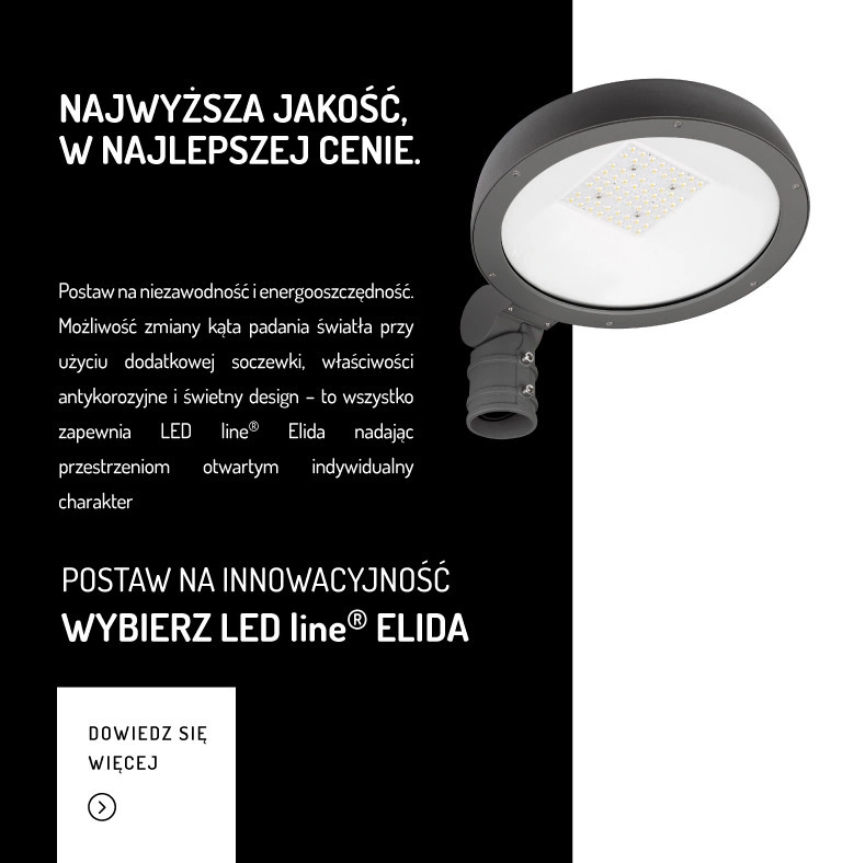 W nocy pełni rolę zwiększenia bezpieczeństwa i podkreśla oświetlane przestrzenie eksponując ich estetykę. Forma oprawy ELIDA , jej uniwersalna barwa i wzornictwo pozwalają na implementację produktu w aranżacjach oświetleniowych zaprojektowanych przez architektów i projektantów.