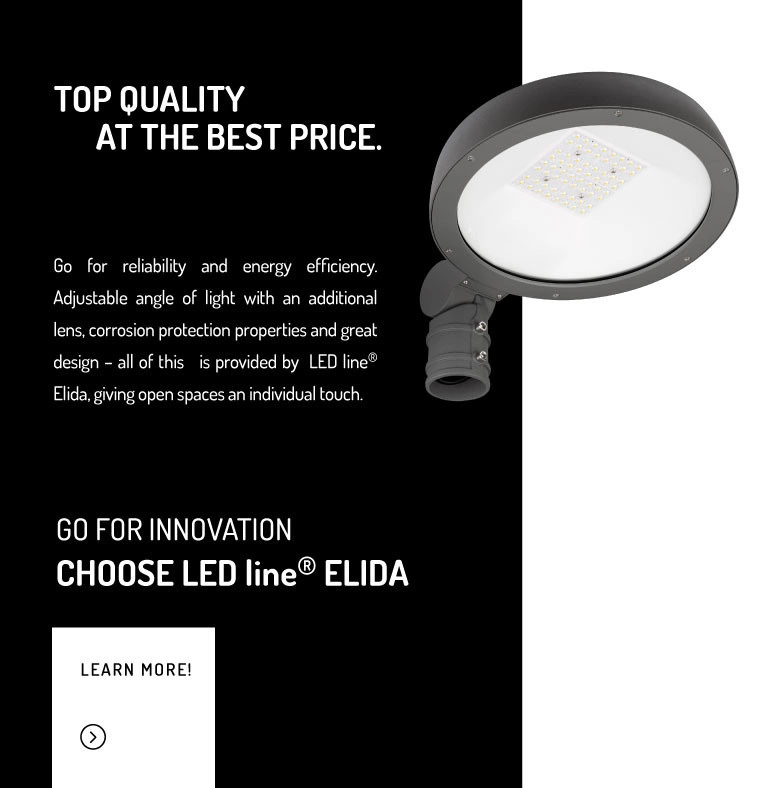 Oprócz walorów użytkowych i estetycznych ELIDA w odpowiednio zaprojektowanych aranżacjach pełni również rolę bezpieczeństwa. Odpowiednia temperatura barwowa i moc zastosowanej oprawy umożliwią bezpieczną komunikację po doświetlonych ścieżkach parkowych, chodnikach osiedli lub drogach dojazdowych.