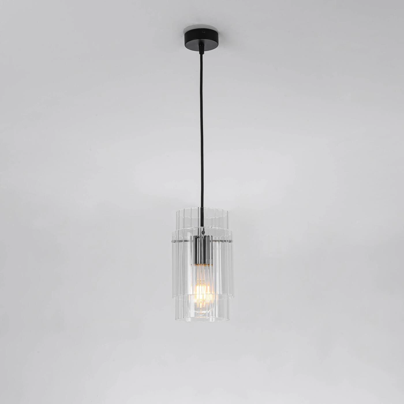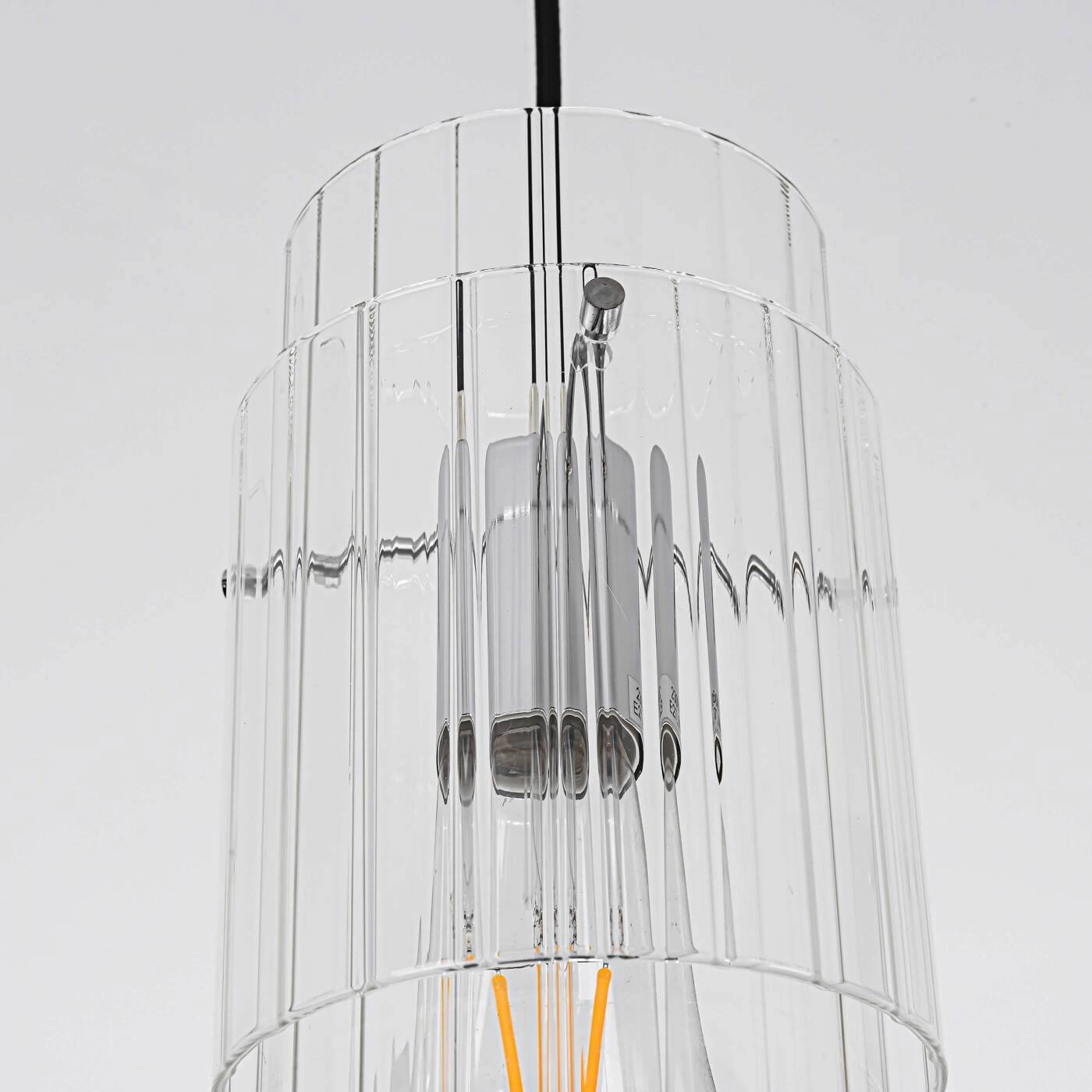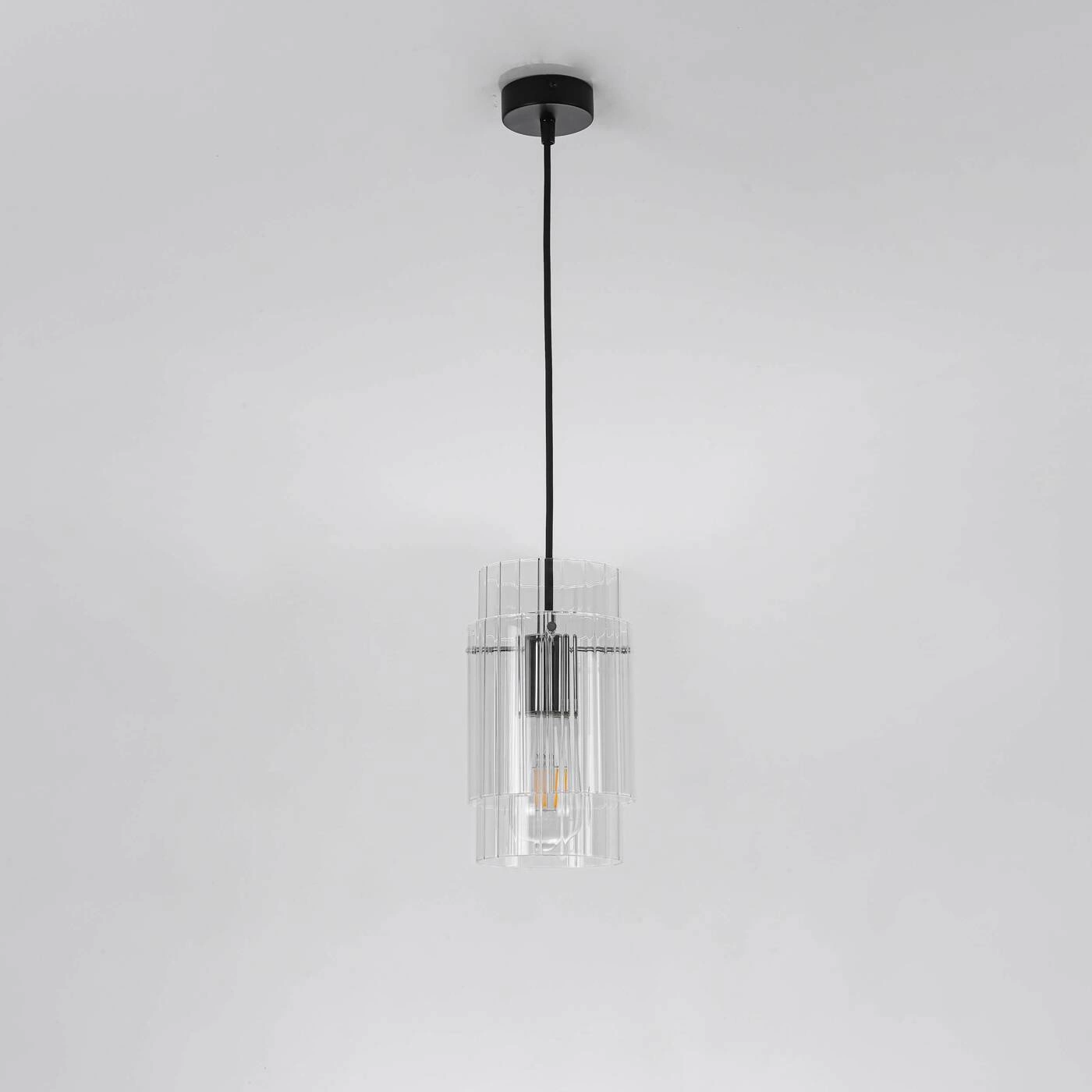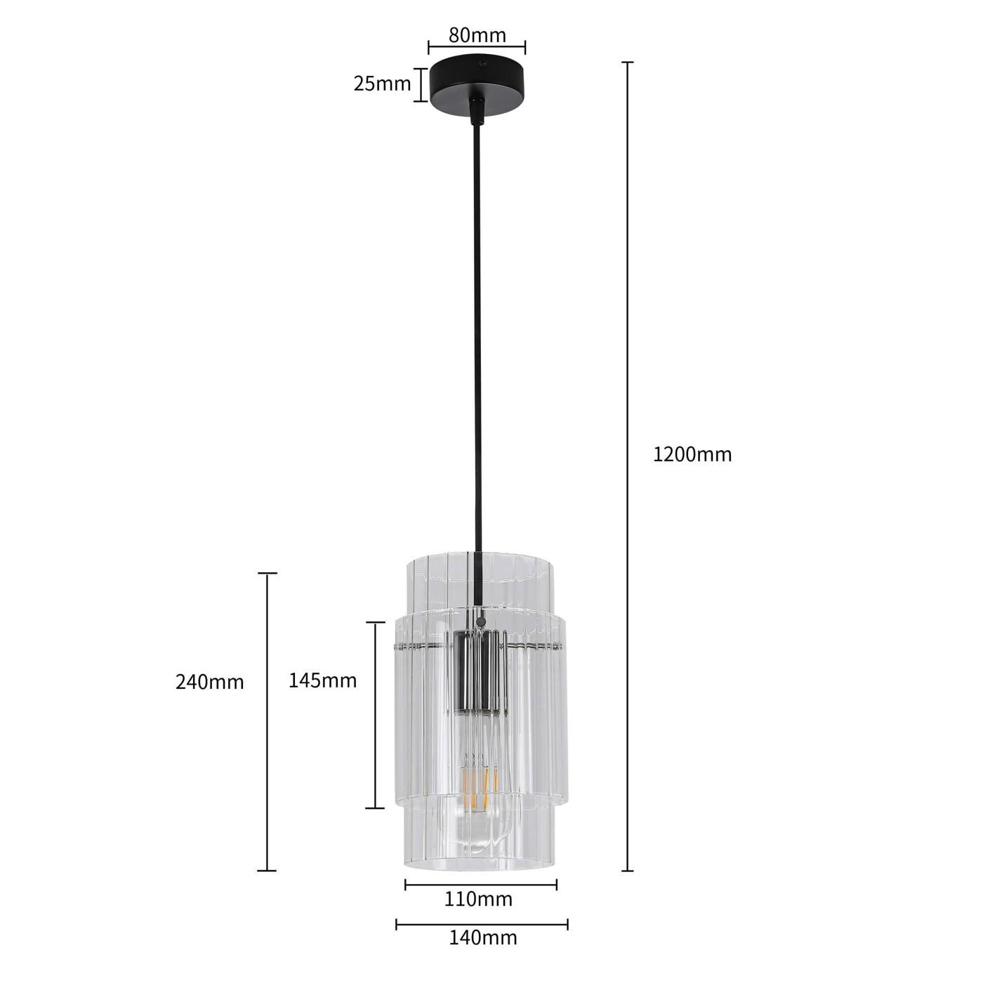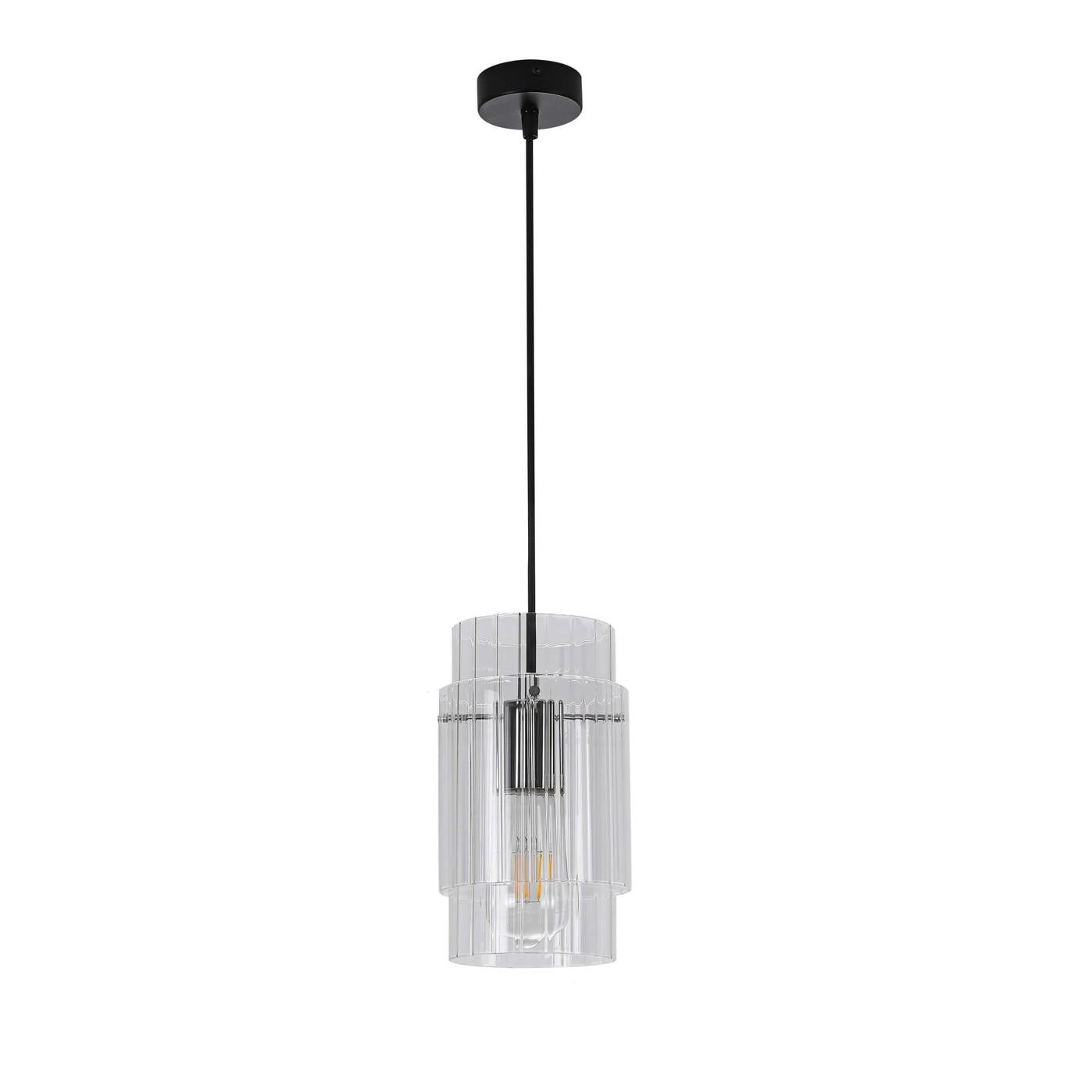 SAVONA LP-707/1P to stylowa lampa wisząca z jednym źródłem światła. Zawiesie lampy wykonano z wysokiej jakości metalu w kolorze czarnym ze srebrną wstawką. Klosz jest z transparentnego szkła z pionowymi wzorami. Oprawa będzie idealnym wyborem do wnętrz urządzonych w stylu klasycznym oraz nowoczesnym. Doskonale będzie się prezentować w: salonie, jadalni, sypialni, pokoju młodzieżowym, gabinecie, biurze, lokalu, kuchni. Dużą zaletą jest możliwość regulacji wysokości. Wysokość maksymalna lampy to: 120 cm, szerokość 14 cm, głębokość 14 cm. Źródłem światła jest żarówka typu E27 o mocy max 40W w ilości 1 szt.
